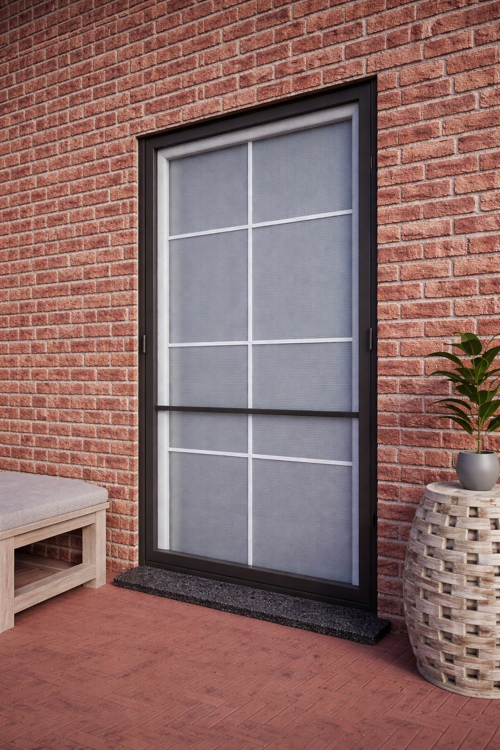 Ramka w kolorze antracytu zapewnia stabilność moskitiery, zaś poprzeczka w tym samym kolorze chroni siatkę przed przypadkowym rozdarciem, czy też wiatrem.