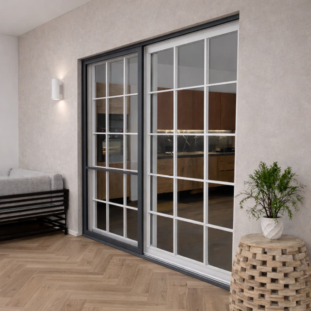 Poszukujesz skutecznej ochrony przed owadami do drzwi przesuwnych? Przedstawiamy Ci naszą moskitierę drzwiową z systemem przesuwania na szynach w kolorze antracytowym. To idealne rozwiązanie do drzwi balkonowych i tarasowych wykonanych w ciemnej kolorystyce. Prowadnice zapewniają komfort użytkowania, a możliwość personalizacji gwarantuje idealne dopasowanie do Twojego okna.
