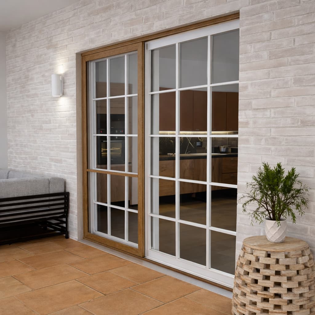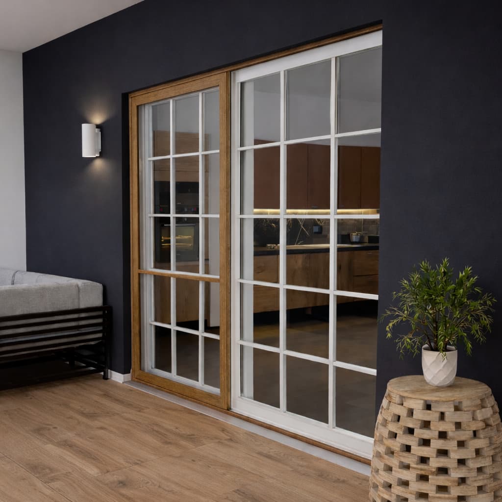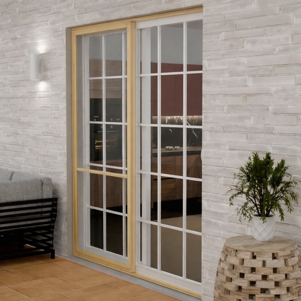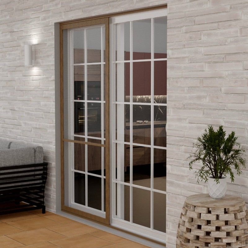 Poszukujesz skutecznej ochrony przed owadami do drzwi przesuwnych? Przedstawiamy Ci naszą moskitierę drzwiową z systemem przesuwania na szynach w kolorze winchester. To idealne rozwiązanie do drzwi balkonowych i tarasowych wykonanych w jasnym odcieniu drewna. Prowadnice zapewniają komfort użytkowania, a możliwość personalizacji gwarantuje idealne dopasowanie do Twojego okna.