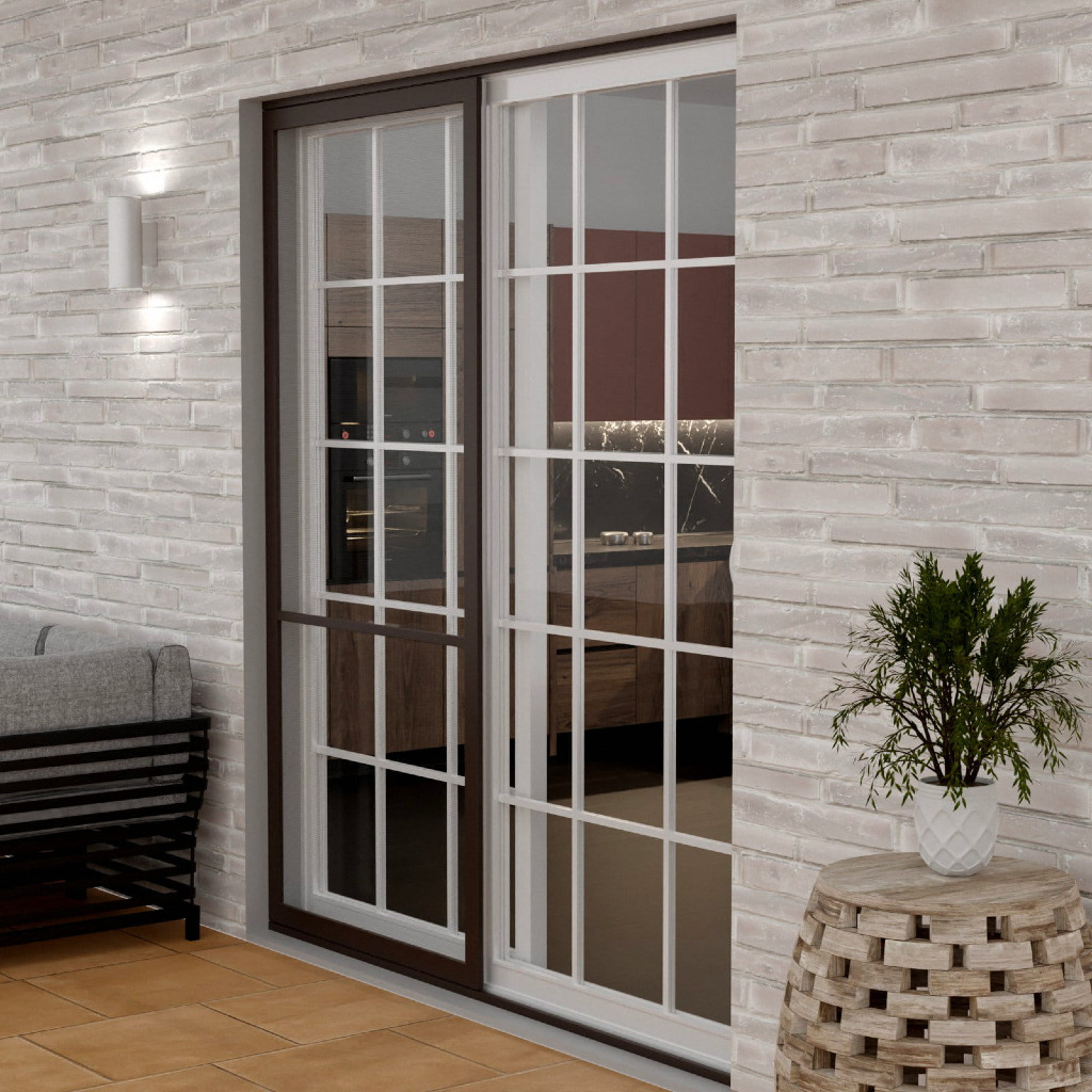 Poszukujesz skutecznej ochrony przed owadami do drzwi przesuwnych? Przedstawiamy Ci naszą moskitierę drzwiową z systemem przesuwania na szynach w kolorze złotego dębu. To idealne rozwiązanie do drzwi balkonowych i tarasowych wykonanych w ciemnym odcieniu drewna. Prowadnice zapewniają komfort użytkowania, a możliwość personalizacji gwarantuje idealne dopasowanie do Twojego okna.