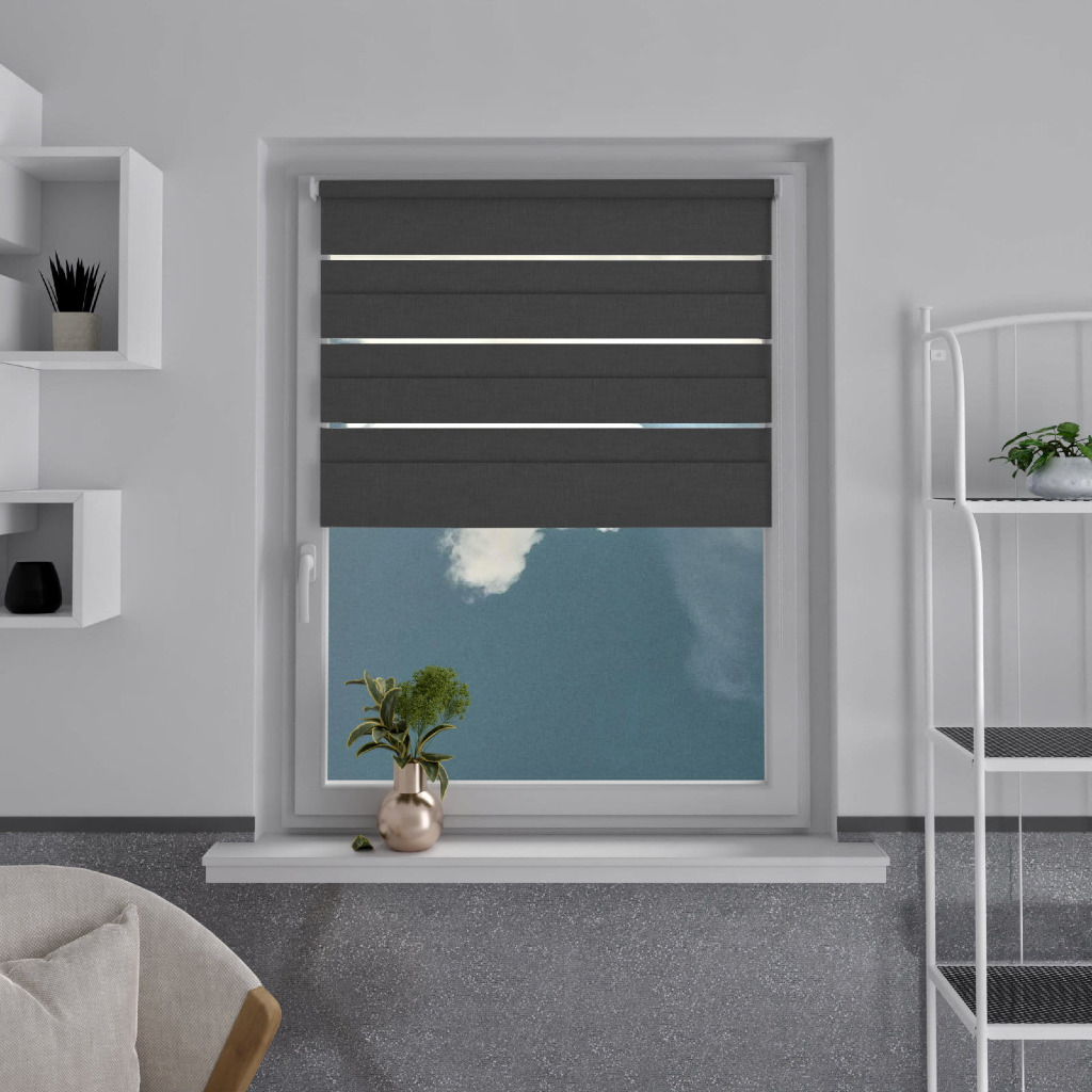 ✅ Tkanina o naprzemiennych pasach – transparentne i zaciemniające pasy pozwalają precyzyjnie regulować ilość światła.