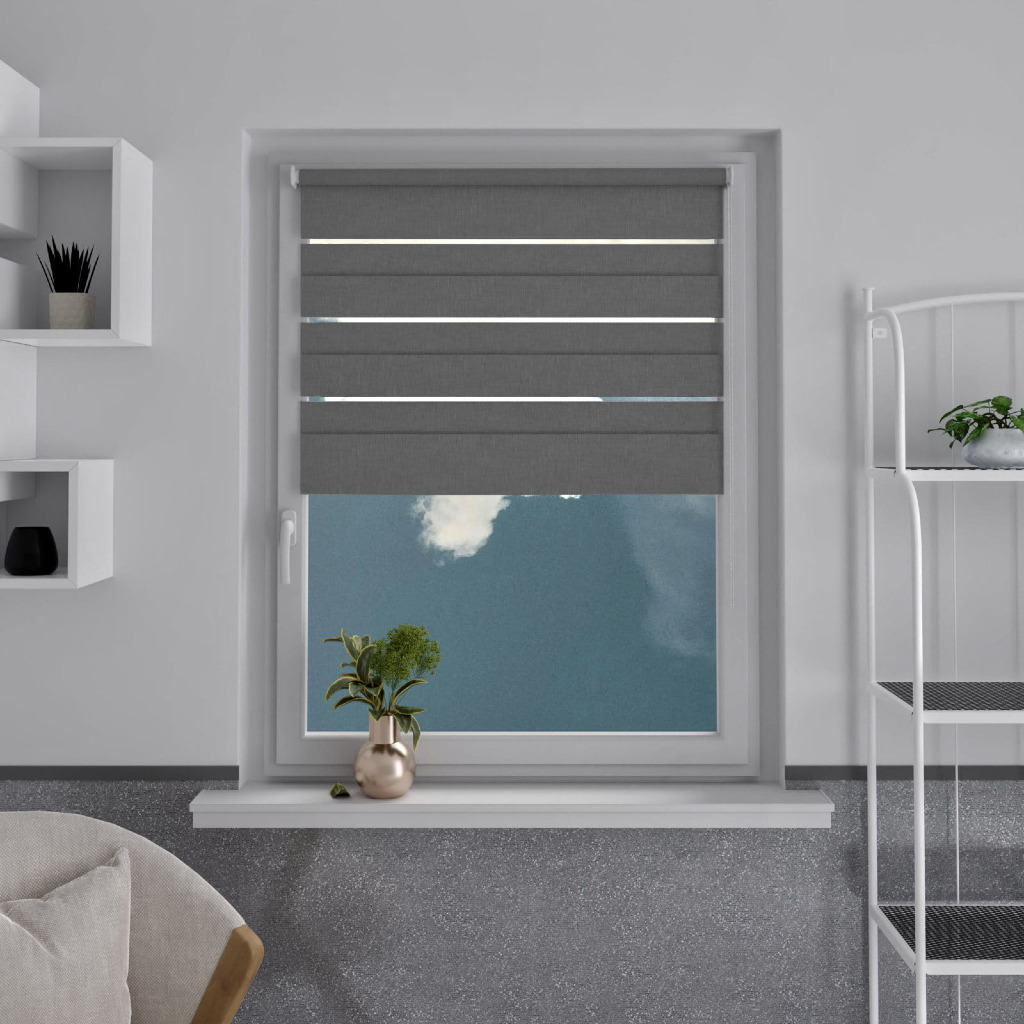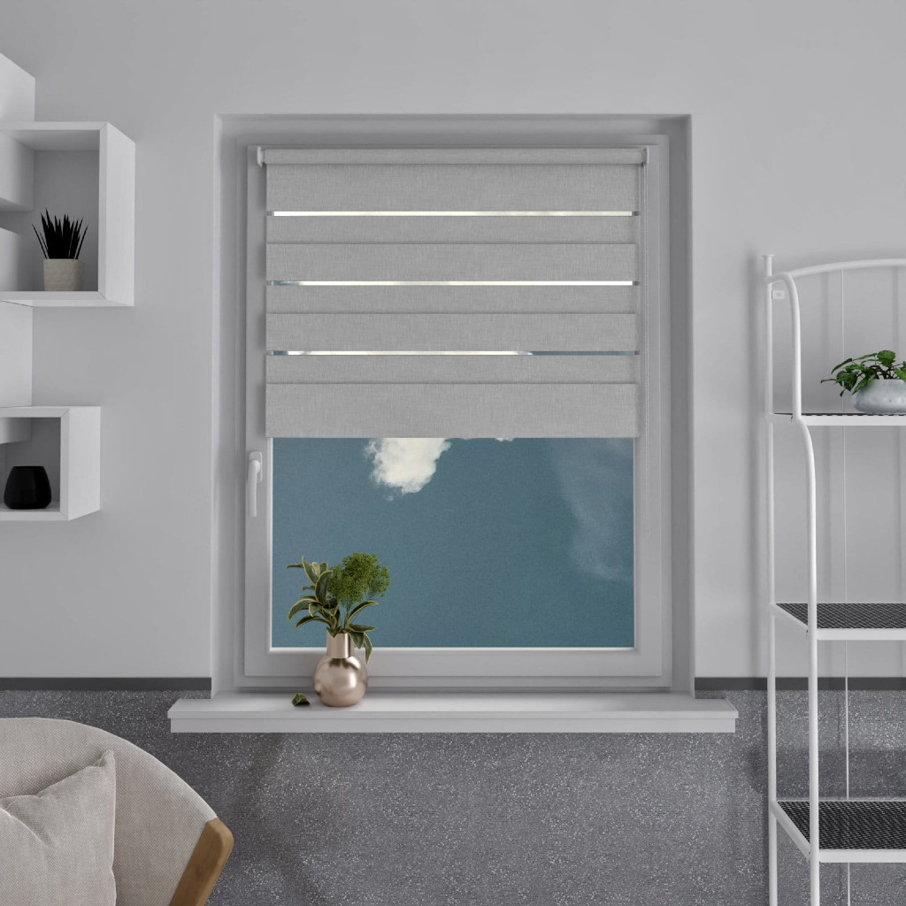 Naprzemienne pasy pozwalają na kontrolowanie ilości światła. W pozycji „noc” roleta znacząco zaciemnia pomieszczenie, jednocześnie nie blokując całkowicie przepływu światła.