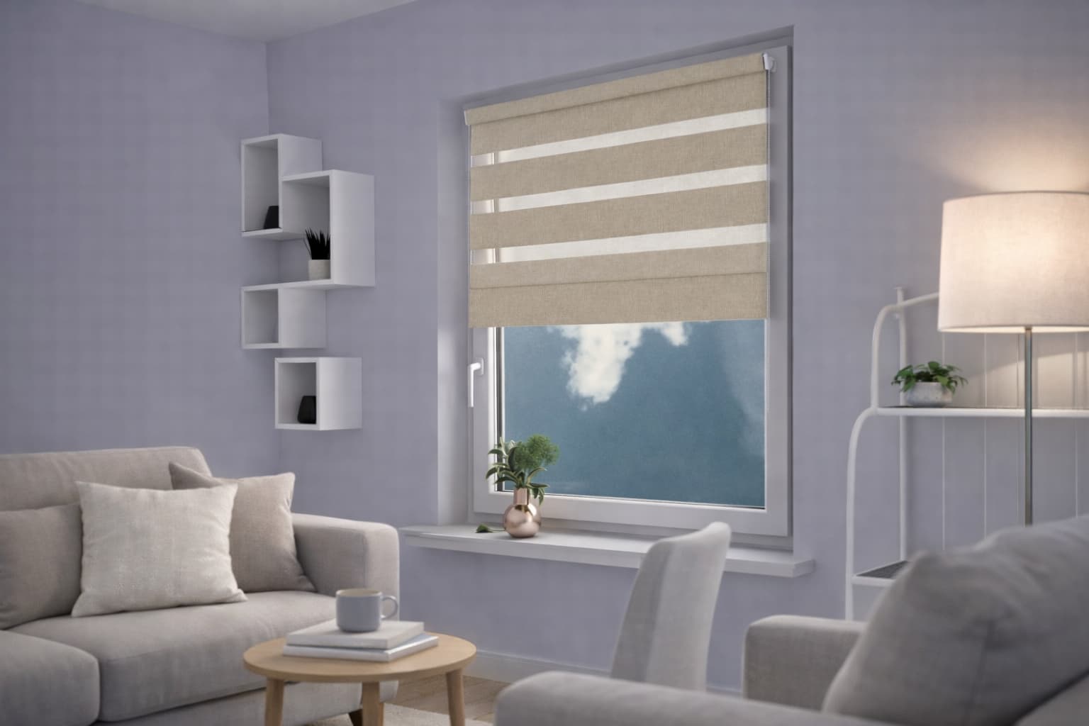 Naprzemienne pasy w roletach dzień-noc pozwalają na precyzyjne kontrolowanie ilości światła wpadającego do pomieszczenia. Ustawione w pozycji „noc” znacząco zaciemniają pomieszczenie, nie blokując całkowicie przepływu światła.
