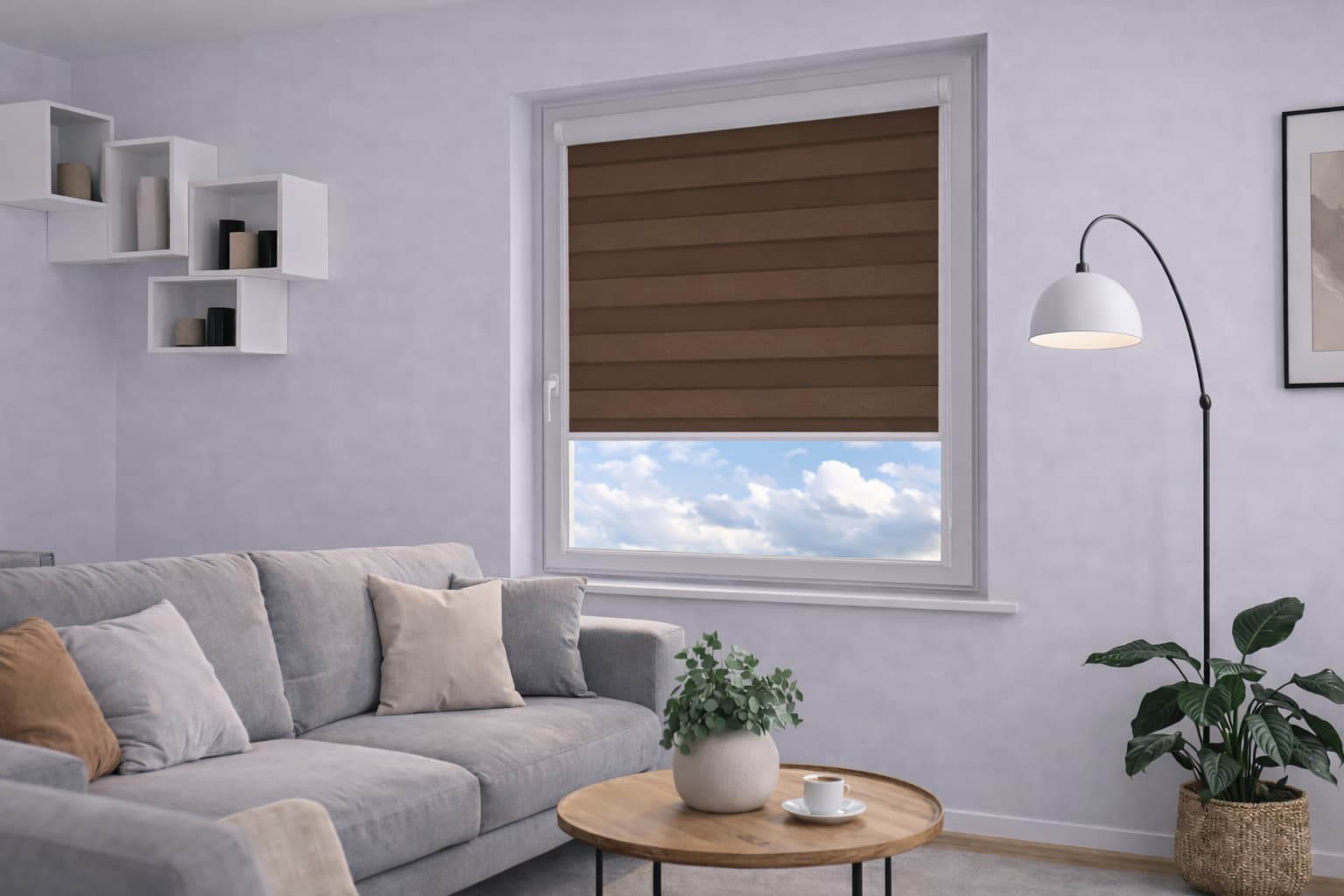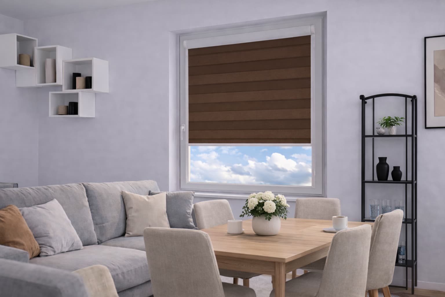 Roleta dzień-noc w kasecie aluminiowej–brązowa