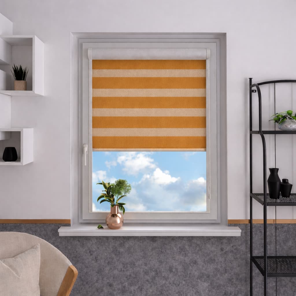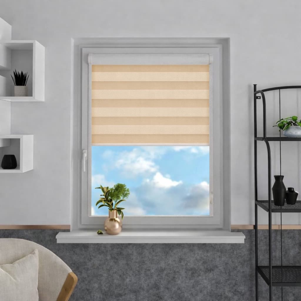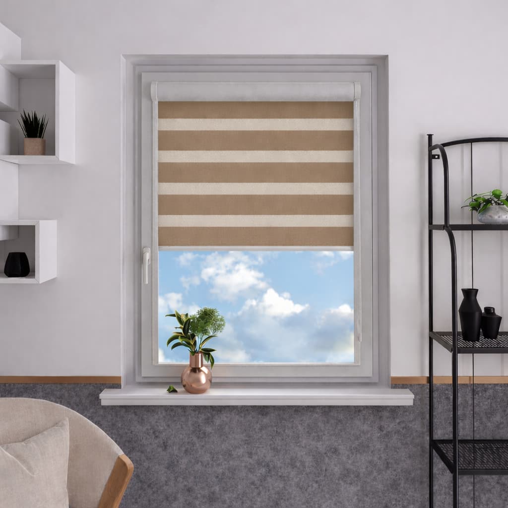 Naprzemienne pasy transparentne i zaciemniające w brązowym odcieniu pozwalają precyzyjnie regulować ilość światła. W pozycji „noc” znacząco zaciemniają pomieszczenie, jednocześnie pozwalając na subtelny przepływ światła.