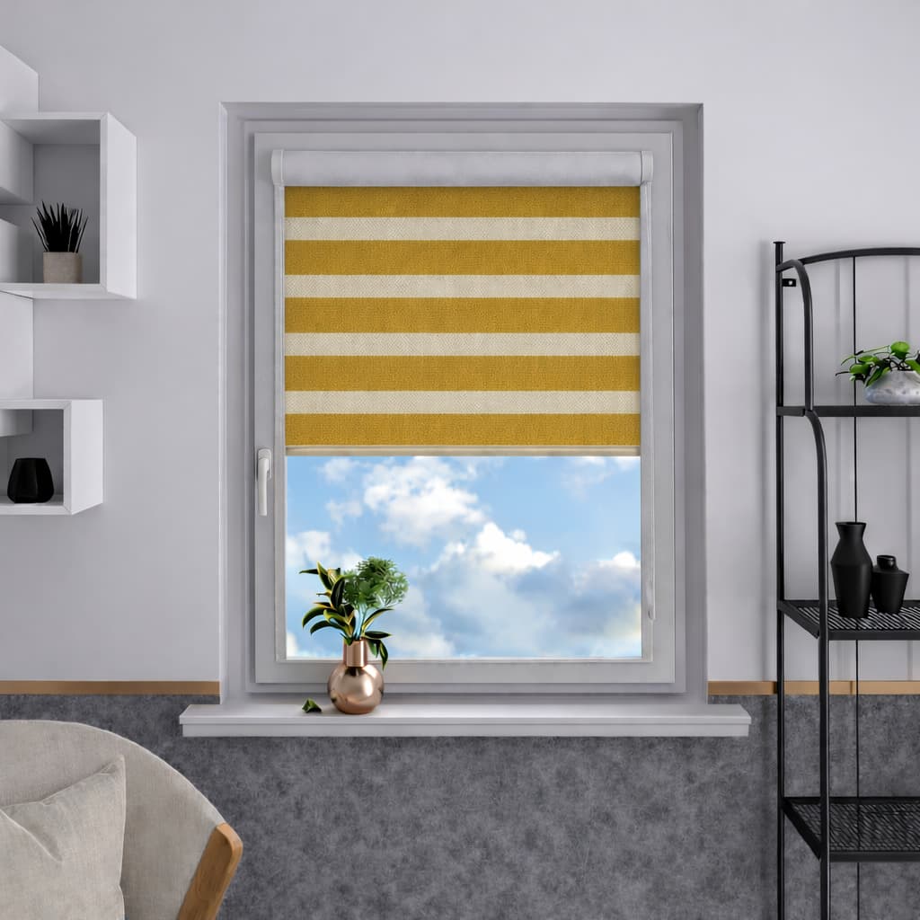 ✅Ochrona termiczna – pasy w odcieniach beżowo-szarych pozwalają regulować nasłonecznienie i chronią przed nagrzewaniem pomieszczenia.