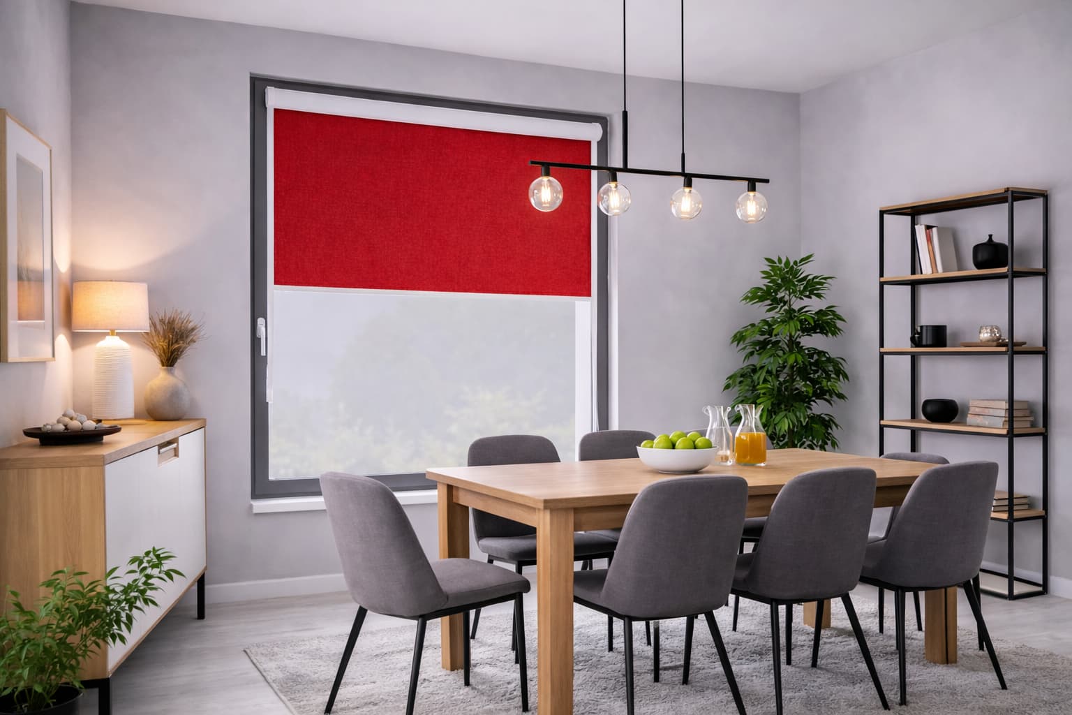 ✅Czerwona tkanina o standardowym stopniu zaciemnienia – ogranicza przenikanie promieni słonecznych, nie blokując ich całkowicie, co zapewnia przytulną atmosferę.