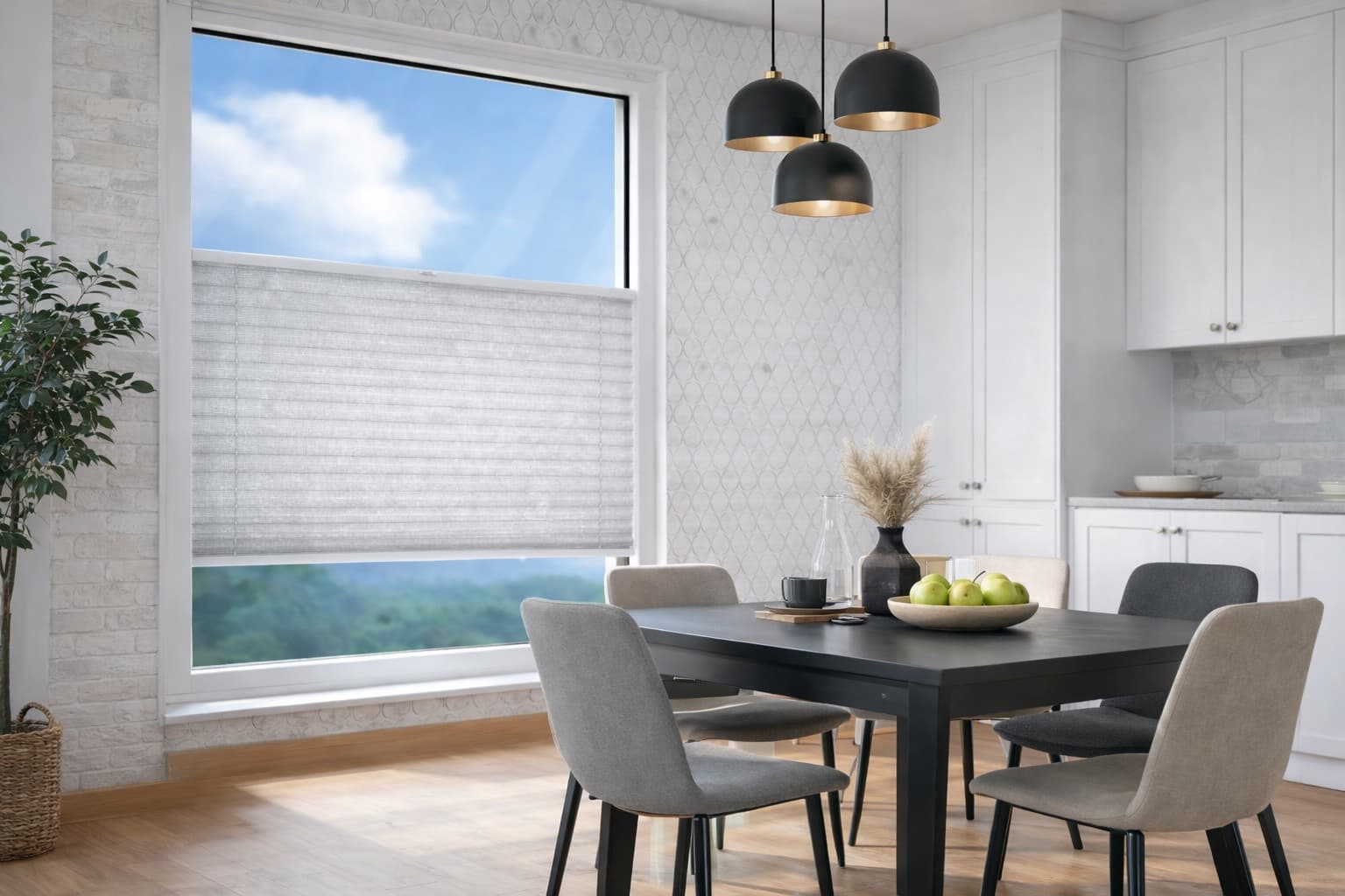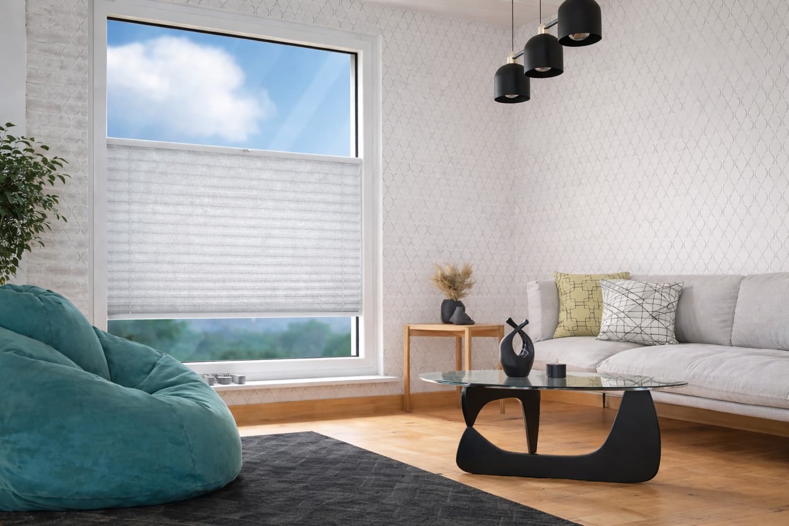 ✅ Biała kolorystyka – klasyczny, stonowany kolor sprawia, że rolety plisowane na wymiar idealnie dopasujesz do każdego stylu wnętrza.