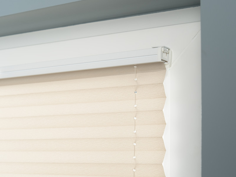 Rolety plisowane posiadają specjalne uchwyty zarówno na rynnie górnej, jak i dolnej. Umożliwia to łatwą i szybką zmianę poziomu zaciemnienia w zależności od własnych potrzeb.