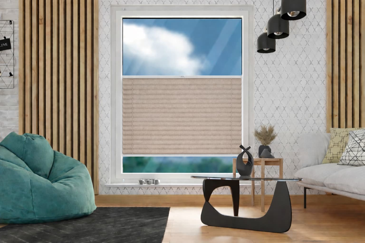 ✅ Tkanina zaciemniająca termoizolacyjna – zastosowana tkanina AD400 z kolekcji ALBEDO DUO 2.0 o strukturze plastra miodu skutecznie ogranicza dopływ światła. Podwójna, komórkowa budowa poprawia izolację termiczną, a eleganckie plisowanie nadaje wnętrzu nowoczesny charakter.