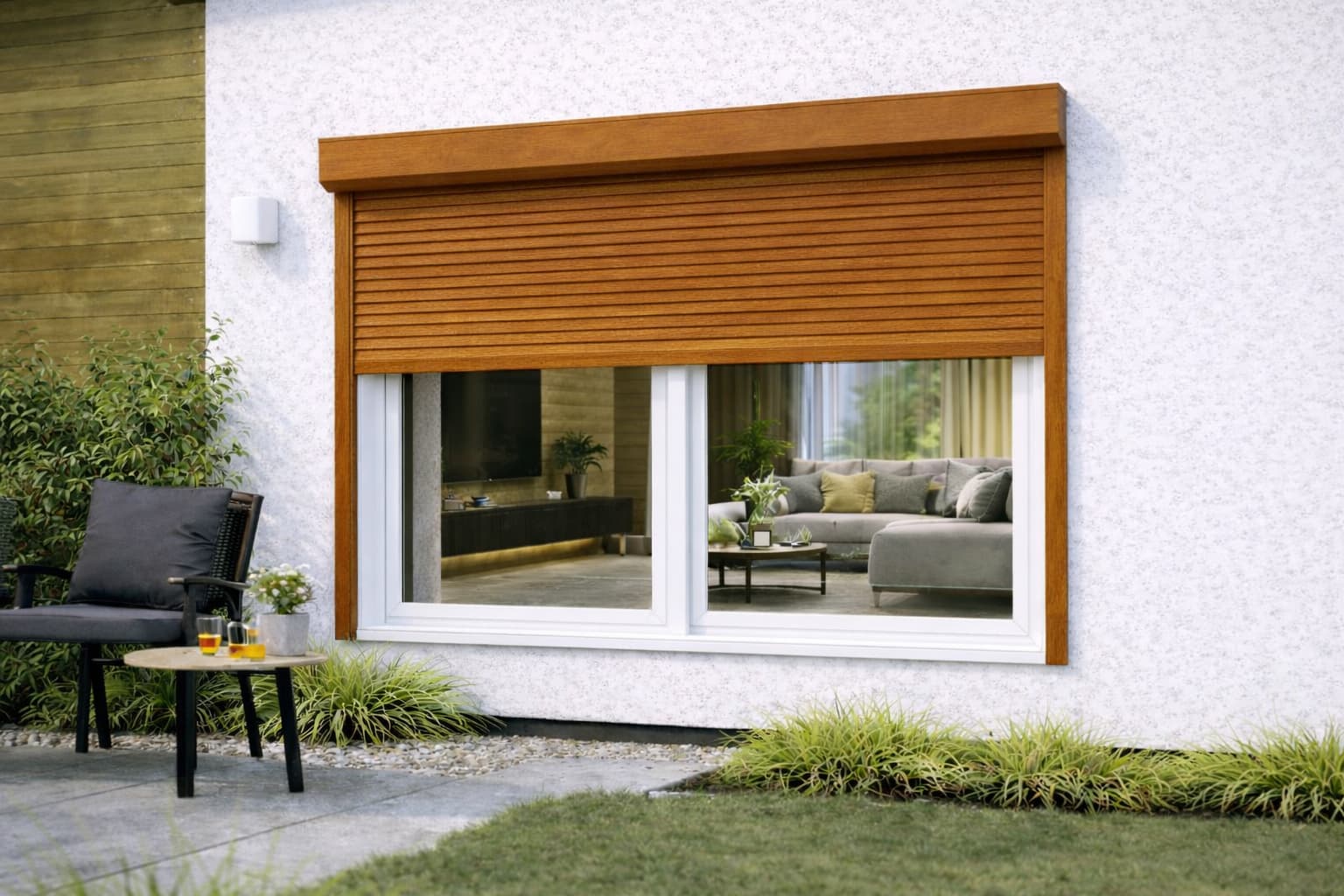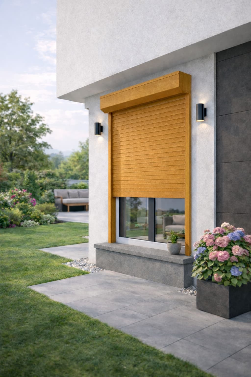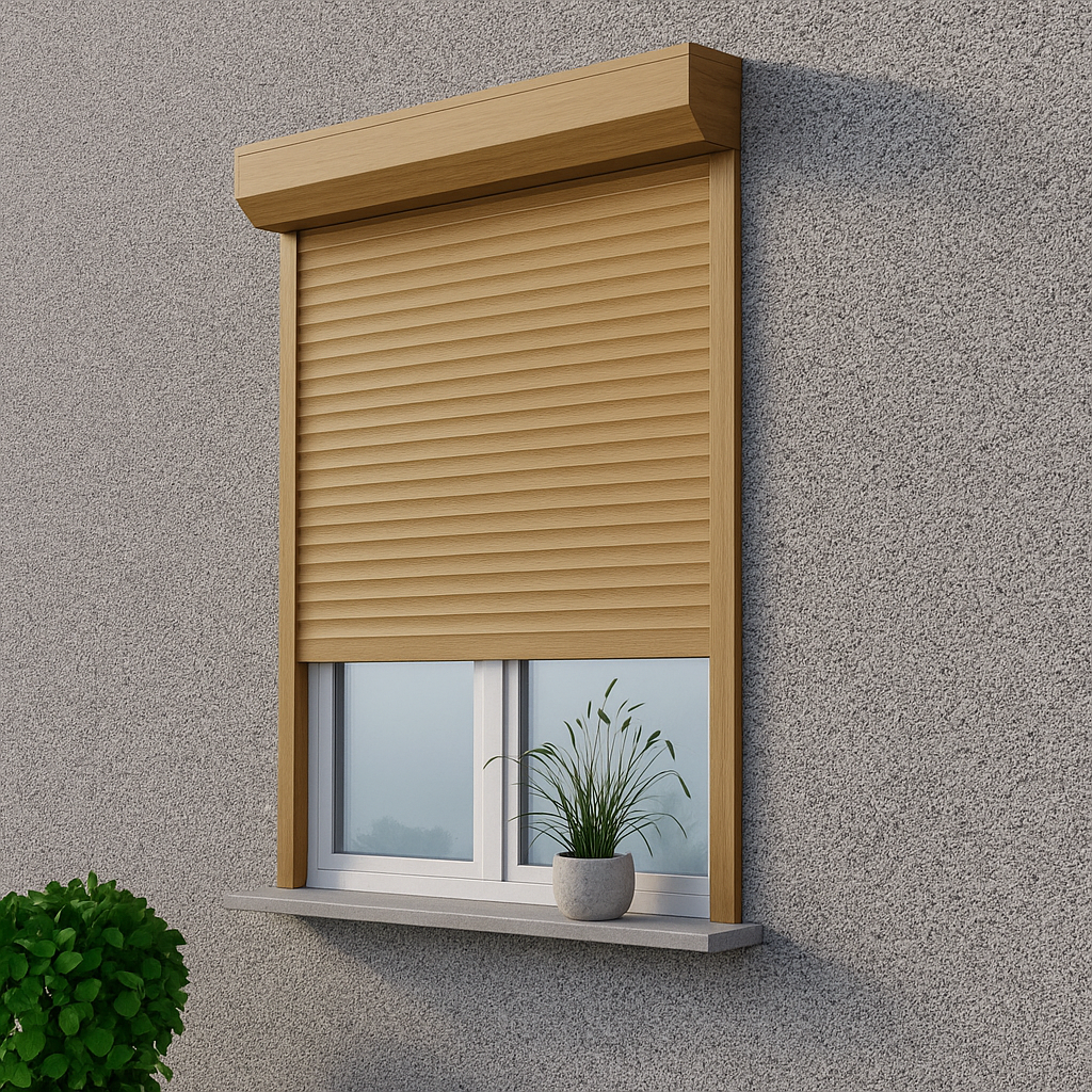 Rolety zewnętrzne adaptacyjne drewnopodobne – złoty dąb