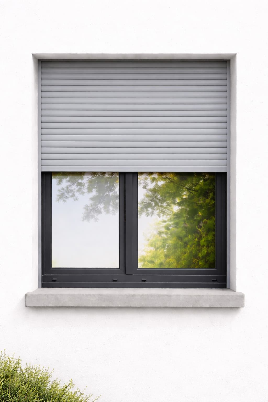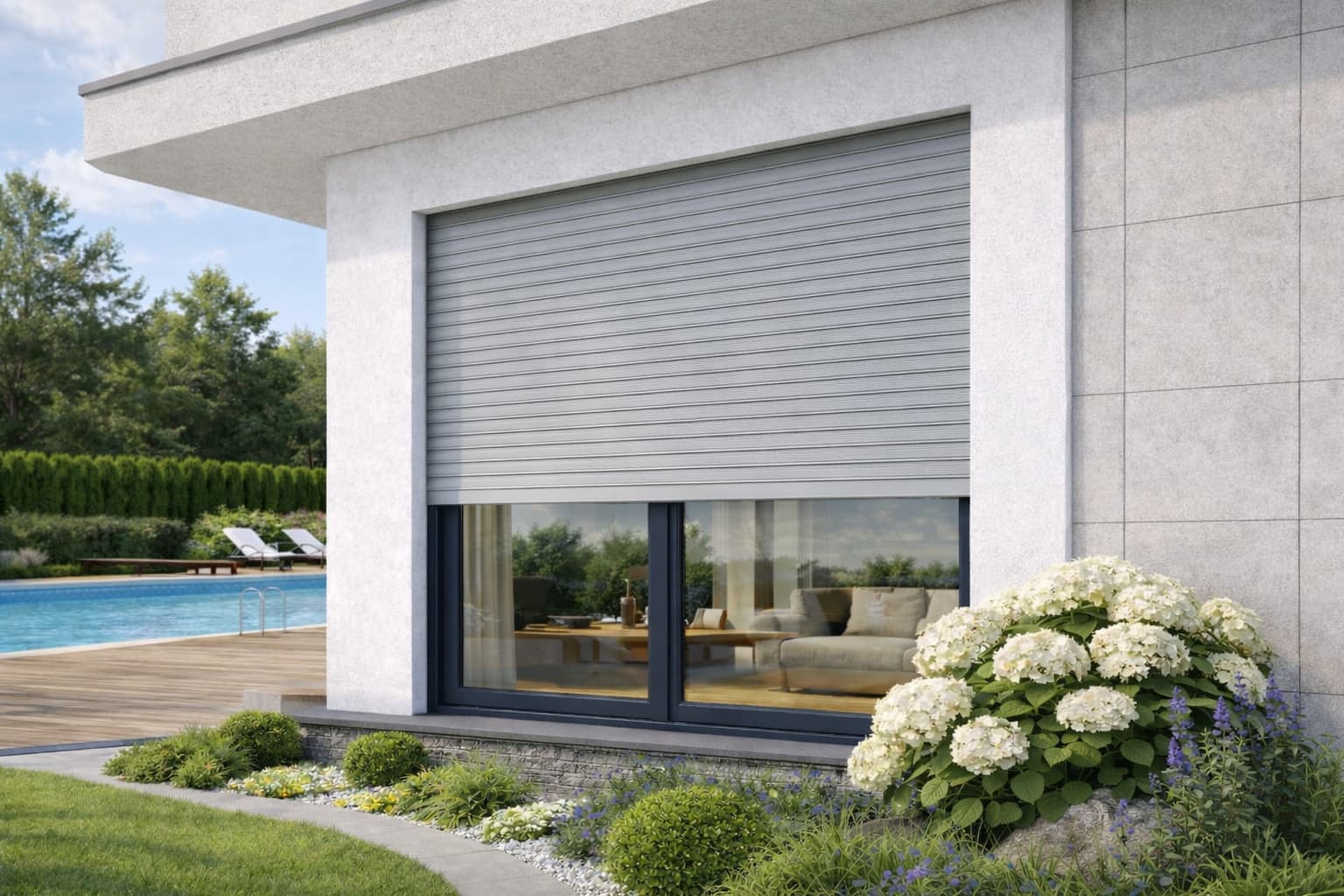 W roletach zewnętrznych podtynkowych skrzynka schowana jest w elewacji. Minimalistyczny design w połączeniu z eleganckim odcieniem szarości podkreśla nowoczesny charakter, gwarantując idealne dopasowanie rolety do Twojego budynku.