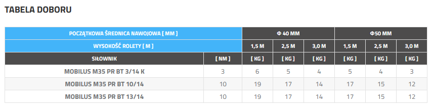 Silnik do rolet mobilus M35 PR 13/14 do rury z Ø 40