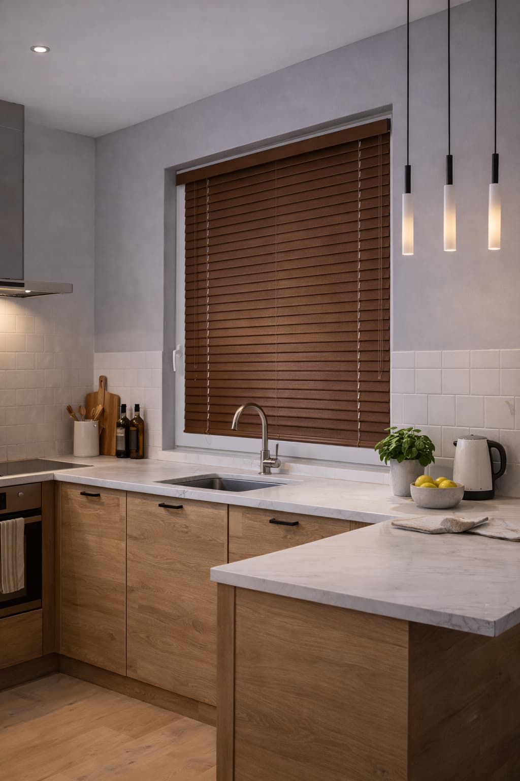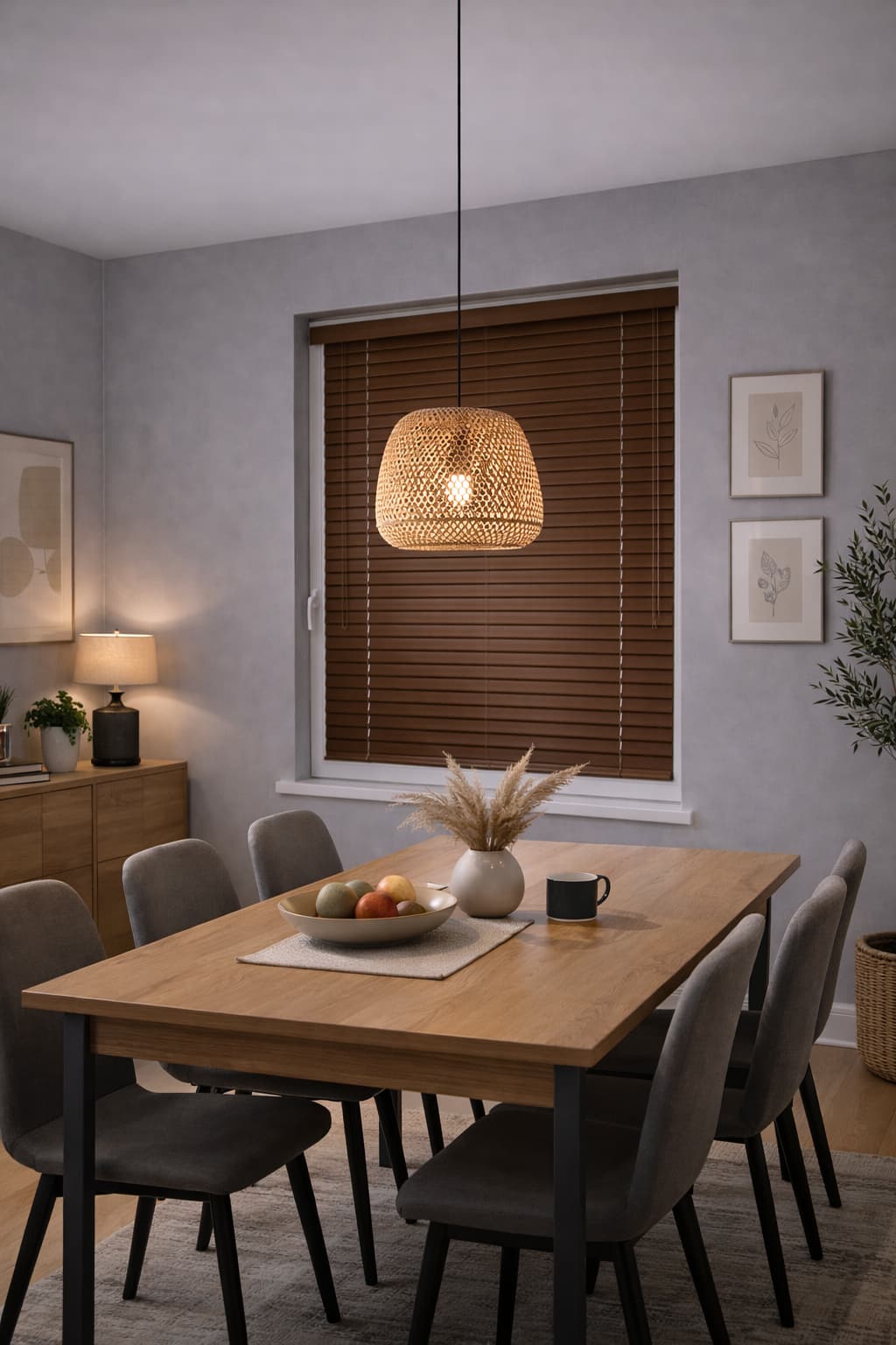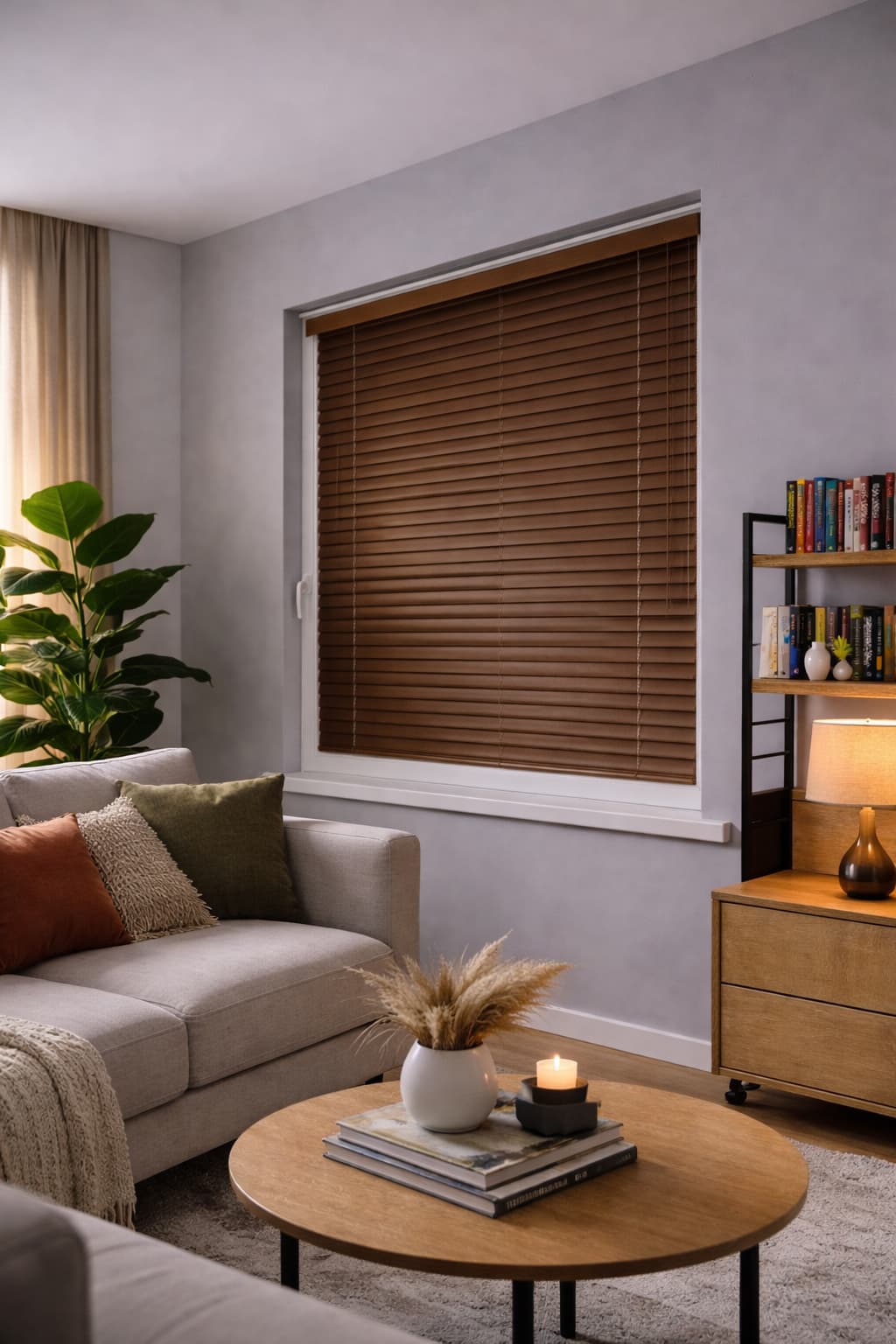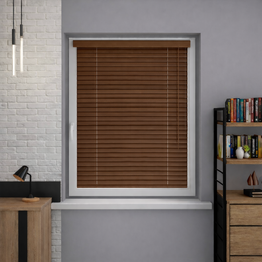 ✅Aluminiowe lamele 25 mm w kolorze brąz karmelowy – zapewniają trwałość i łatwość czyszczenia. Wystarczy, że przetrzesz je wilgotną ściereczką.