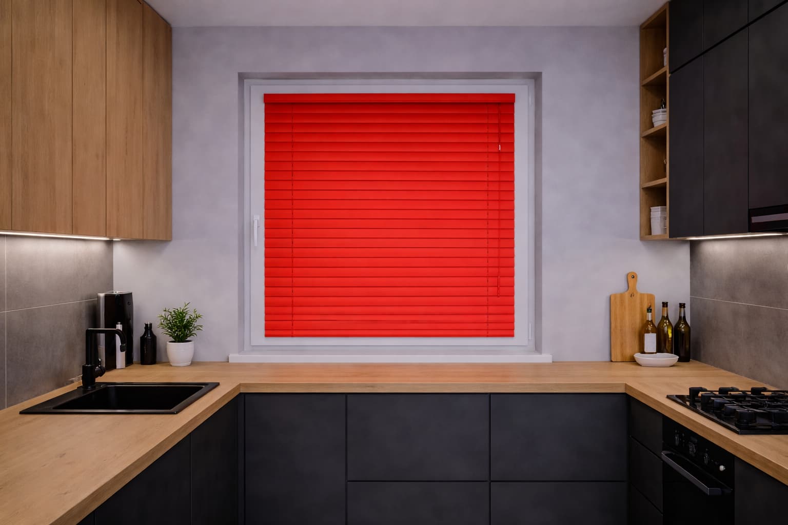 ✅Aluminiowe lamele 25 mm w kolorze czerwonym – zapewniają trwałość i łatwość czyszczenia. Wystarczy, że przetrzesz je wilgotną ściereczką.