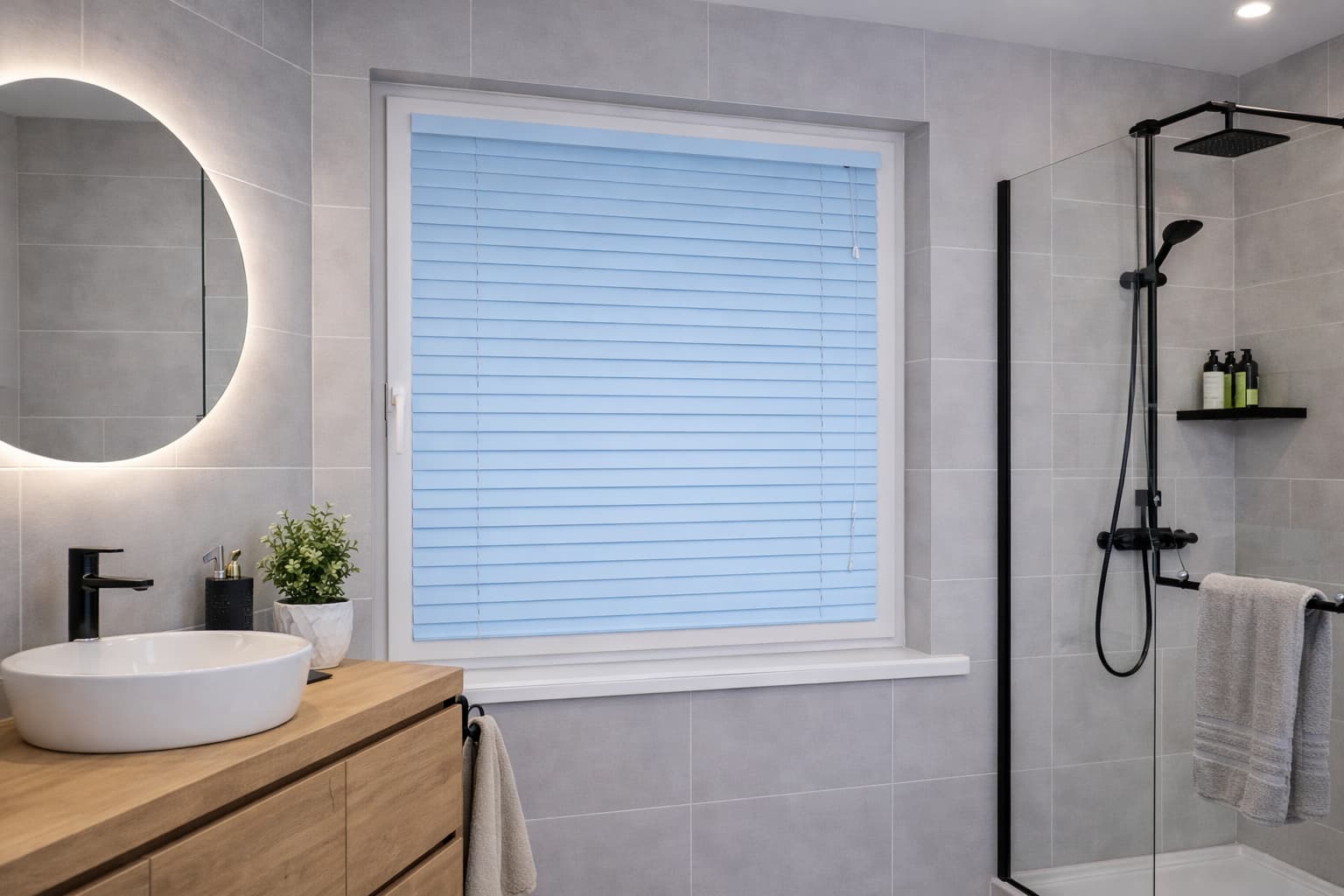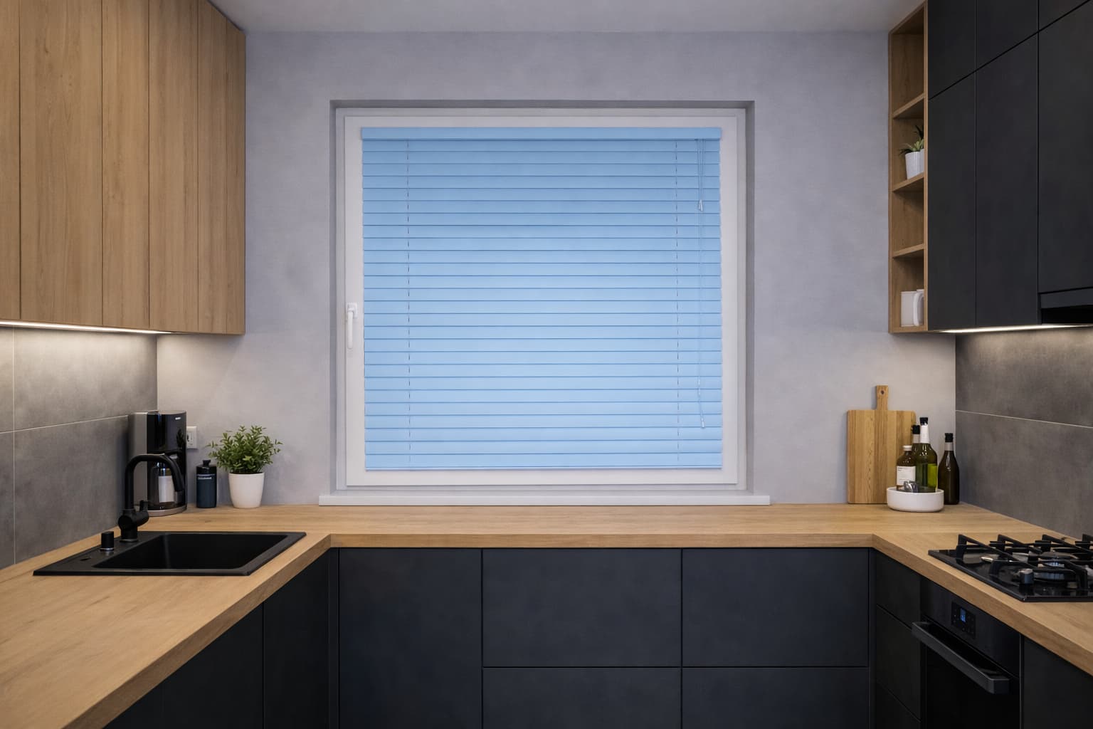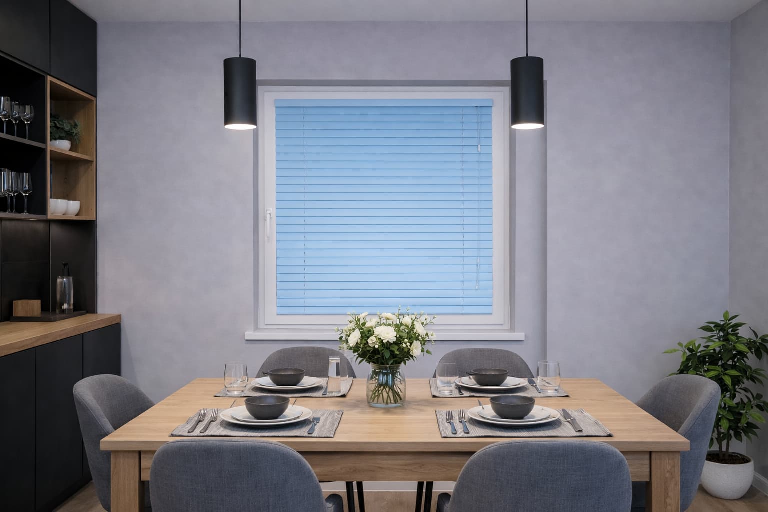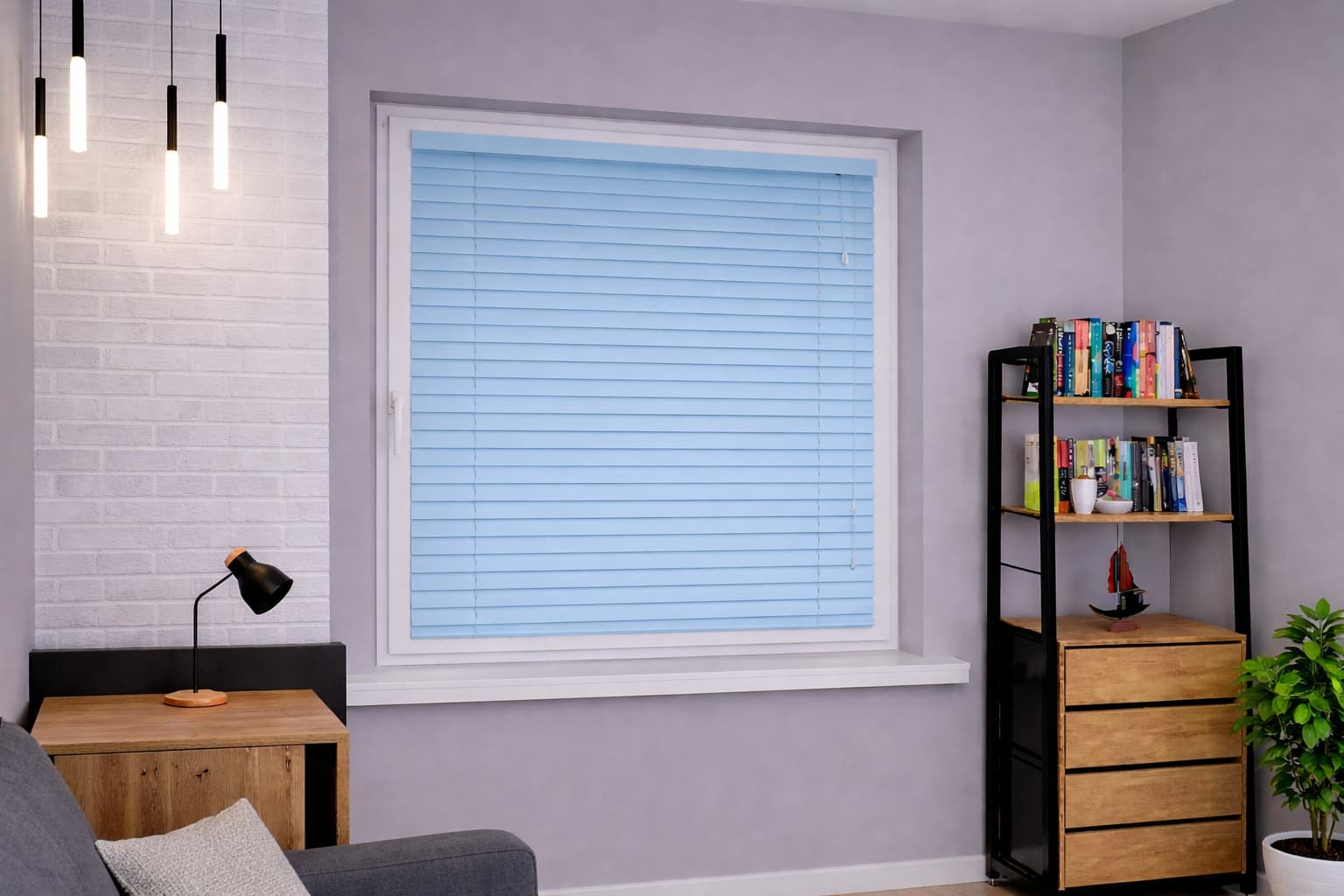 ✅Aluminiowe lamele 25 mm w kolorze jasnoniebieskim – zapewniają trwałość i łatwość czyszczenia. Wystarczy, że przetrzesz je wilgotną ściereczką.