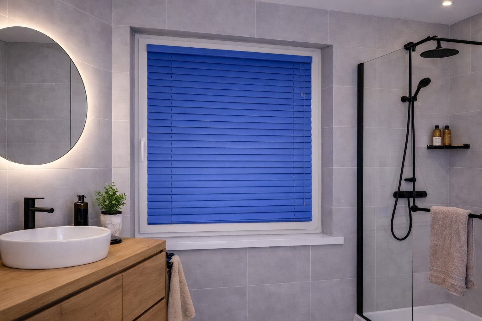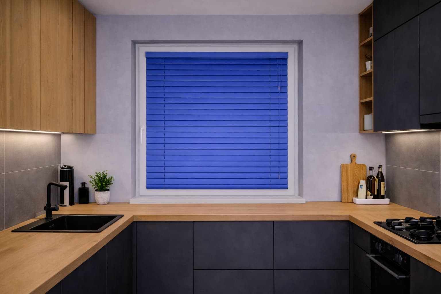 ✅Aluminiowe lamele 25 mm w kolorze niebieskim – zapewniają trwałość i łatwość czyszczenia. Wystarczy, że przetrzesz je wilgotną ściereczką.