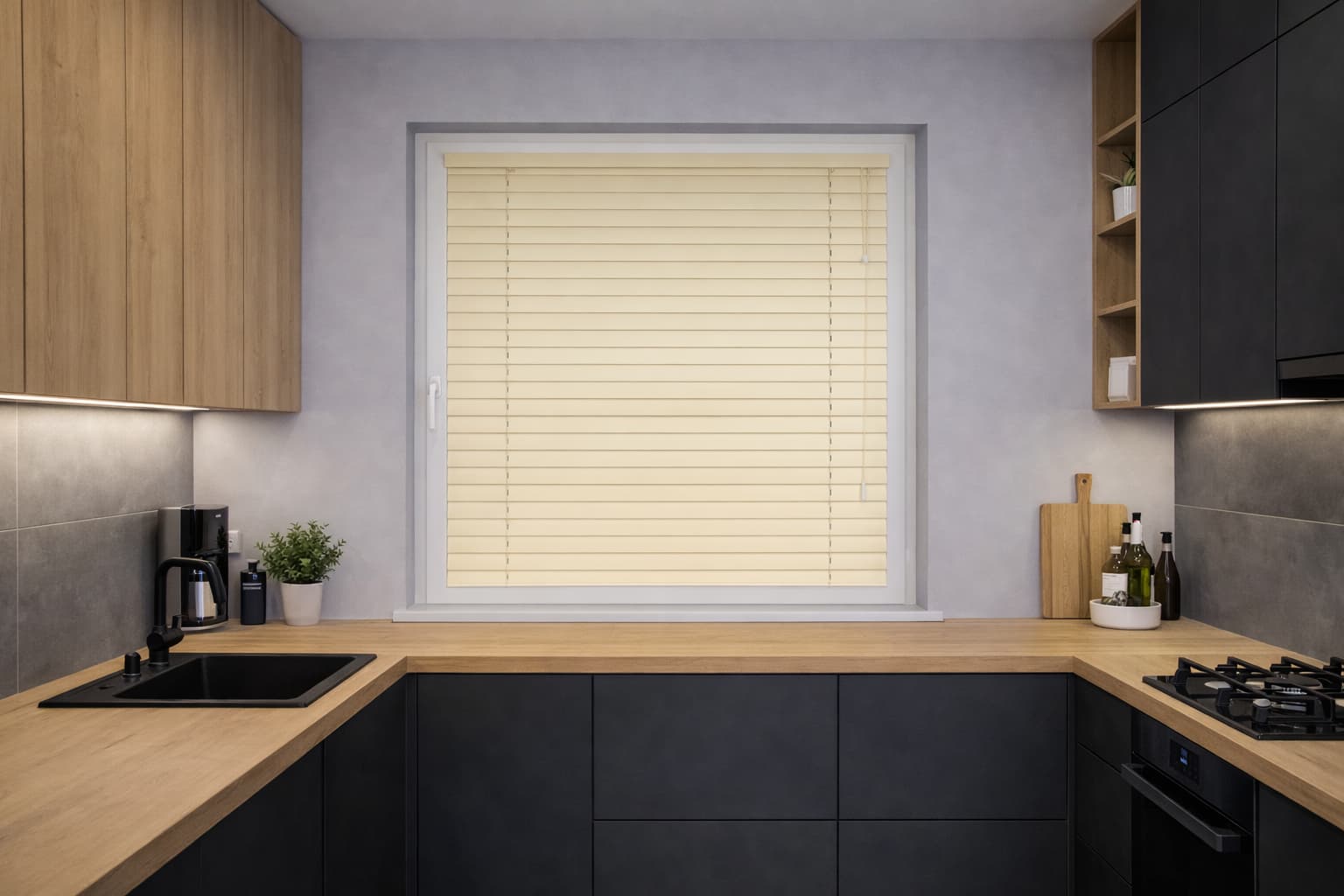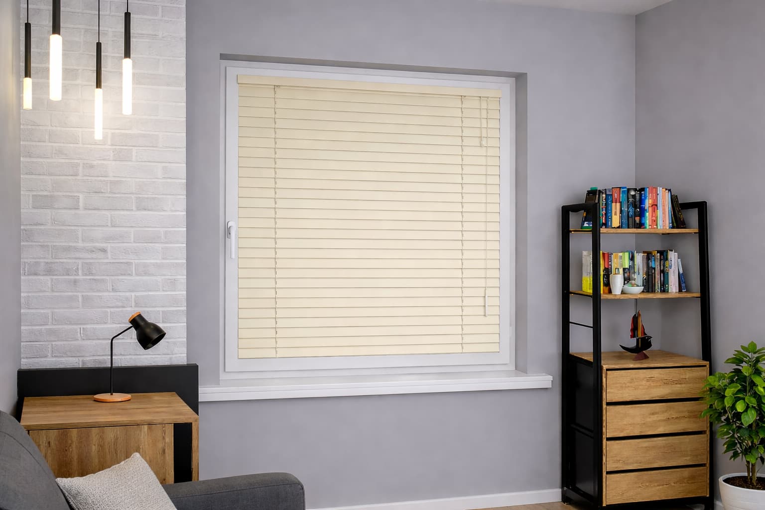 Żaluzje aluminiowe 25 mm PREMIUM w kolorze kremowej bieli o delikatnie szorstkiej strukturze to elegancka i funkcjonalna osłona okienna, stworzona z myślą o jasnych, przytulnych i ponadczasowych wnętrzach. Ciepły odcień kremowej bieli w matowym wykończeniu velvet nadaje im subtelny, harmonijny charakter oraz skutecznie redukuje refleksy światła.