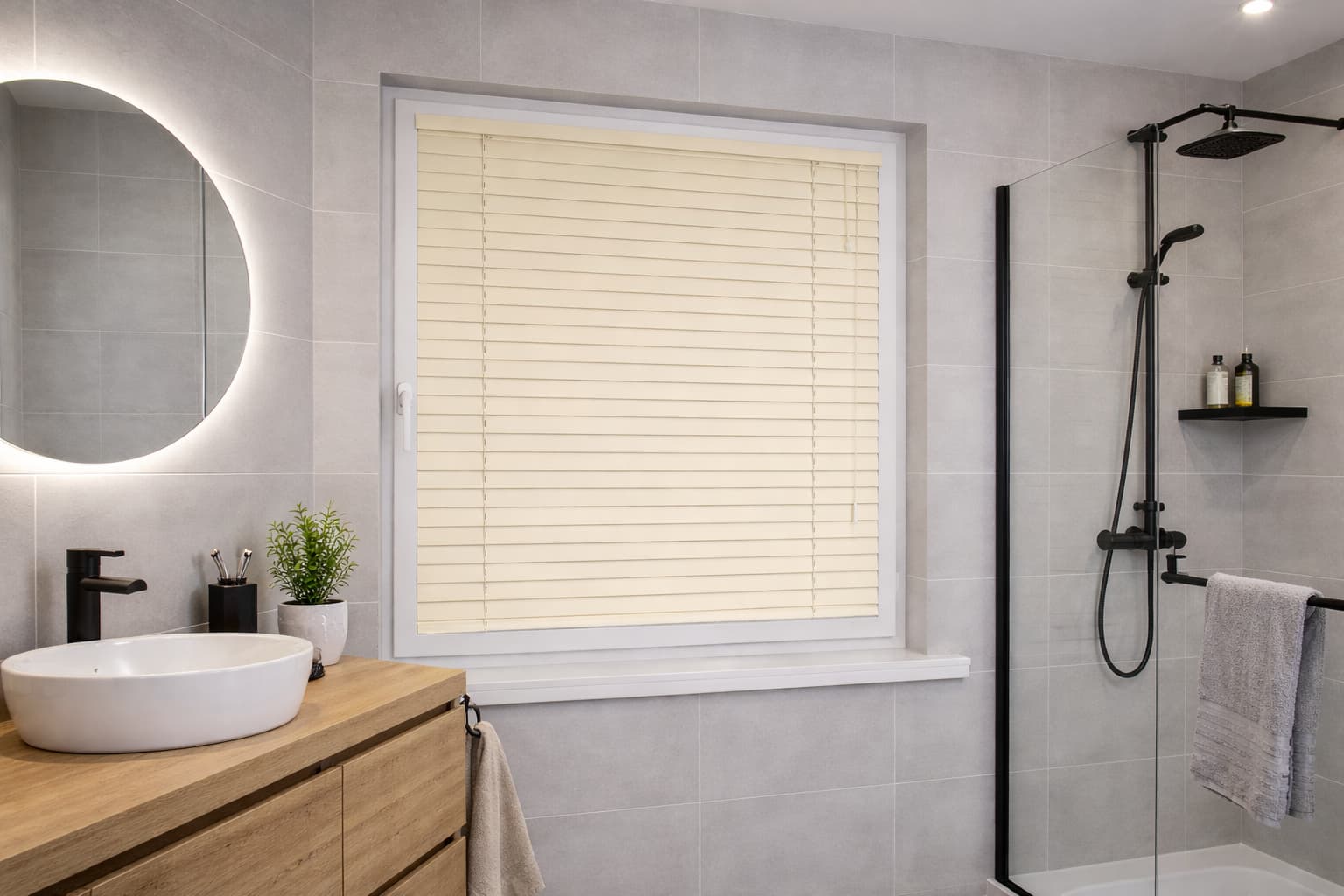 Żaluzja aluminiowa 25 mm premium–kremowa biel szorstka