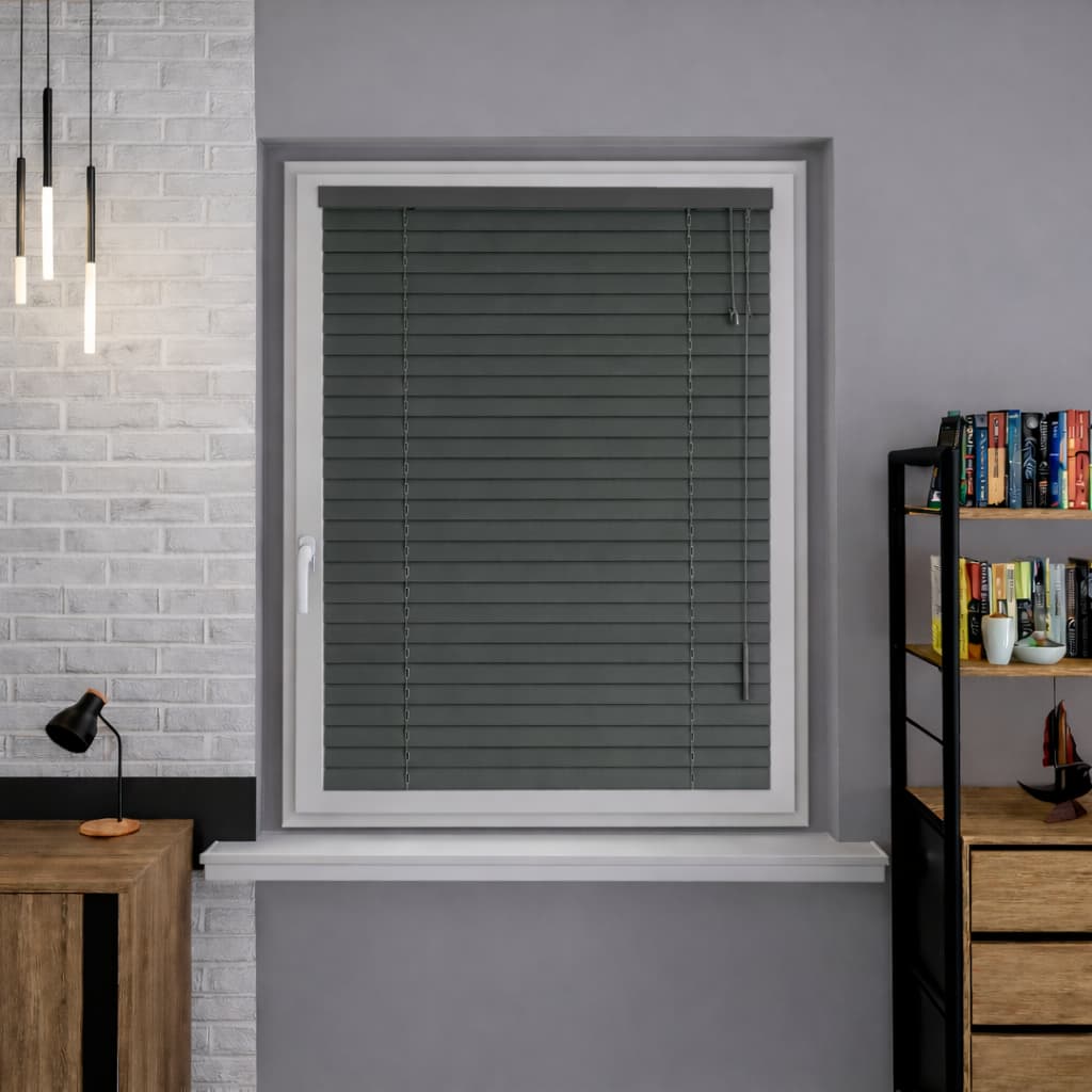 Żaluzje aluminiowe 25 mm PREMIUM w kolorze szarym grafitowym to elegancka i funkcjonalna osłona okienna, stworzona z myślą o nowoczesnych oraz loftowych wnętrzach. Głęboki, grafitowy odcień w matowym wykończeniu velvet nadaje im wyrazisty, stylowy charakter i skutecznie redukuje refleksy światła.