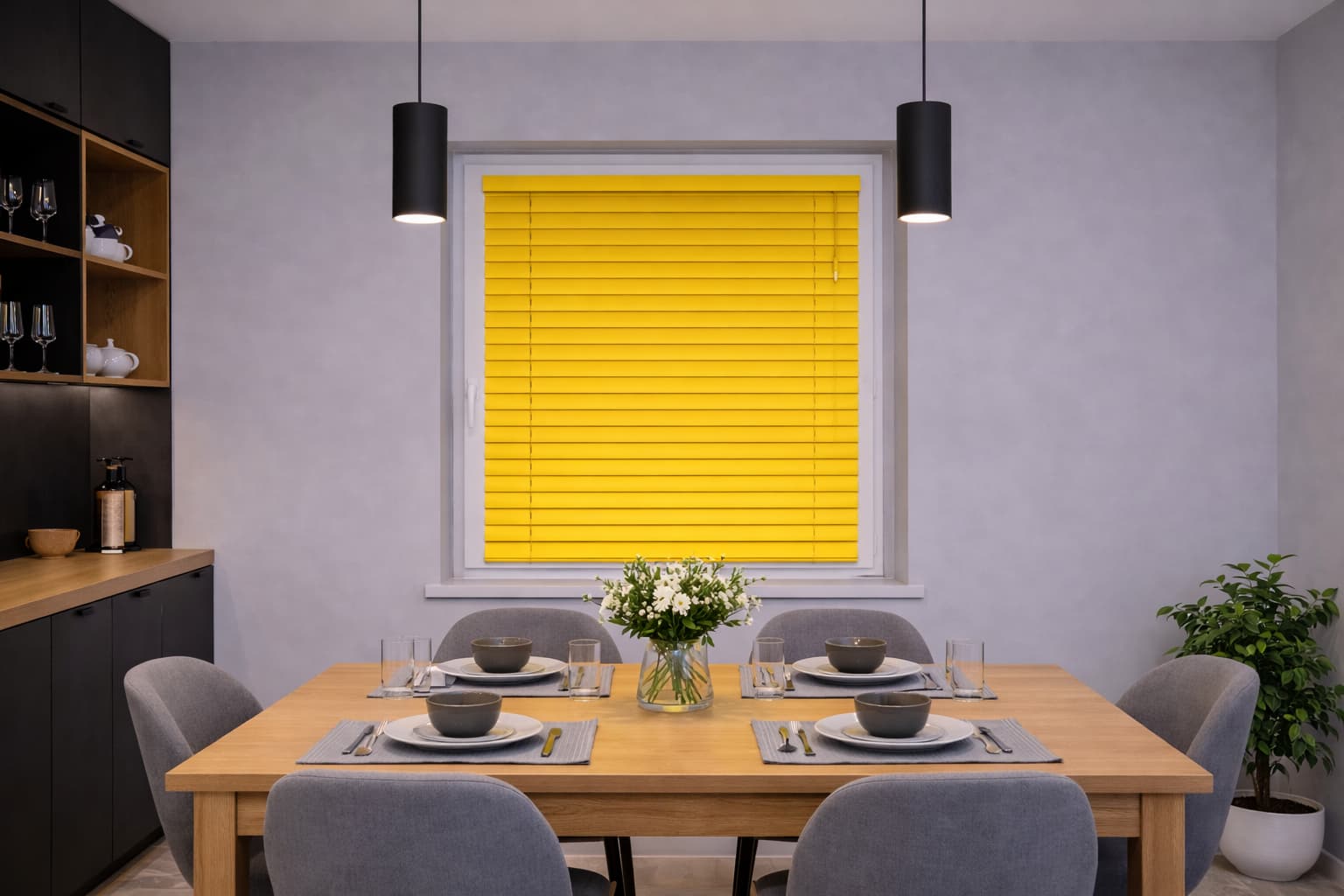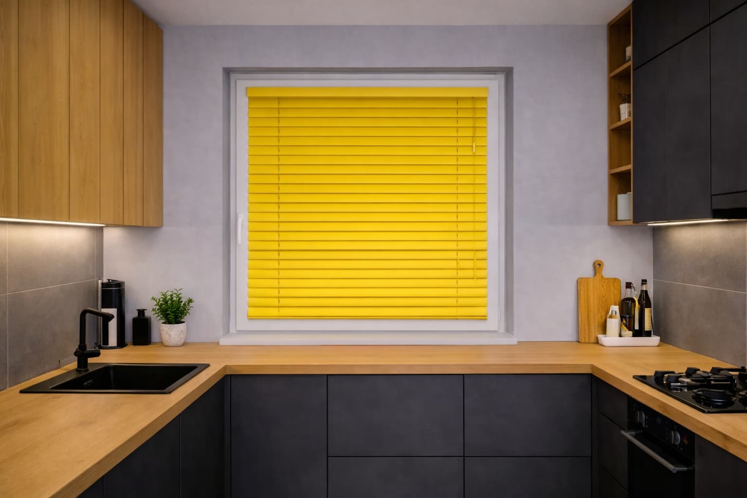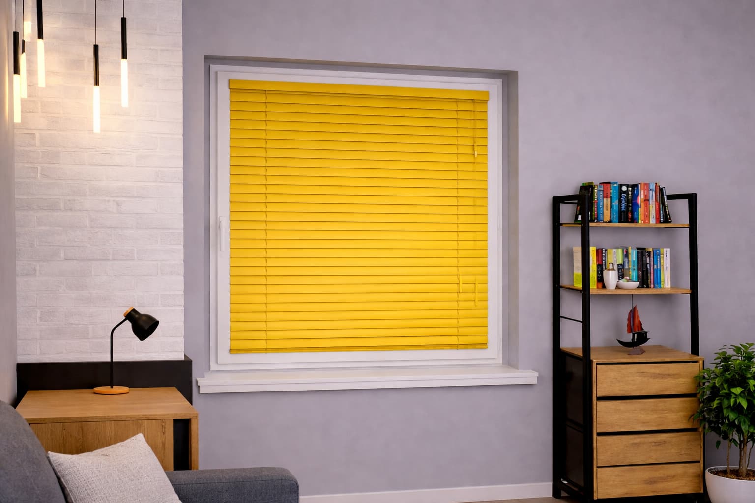✅Aluminiowe lamele 25 mm w kolorze żółtym – zapewniają trwałość i łatwość czyszczenia. Wystarczy, że przetrzesz je wilgotną ściereczką.