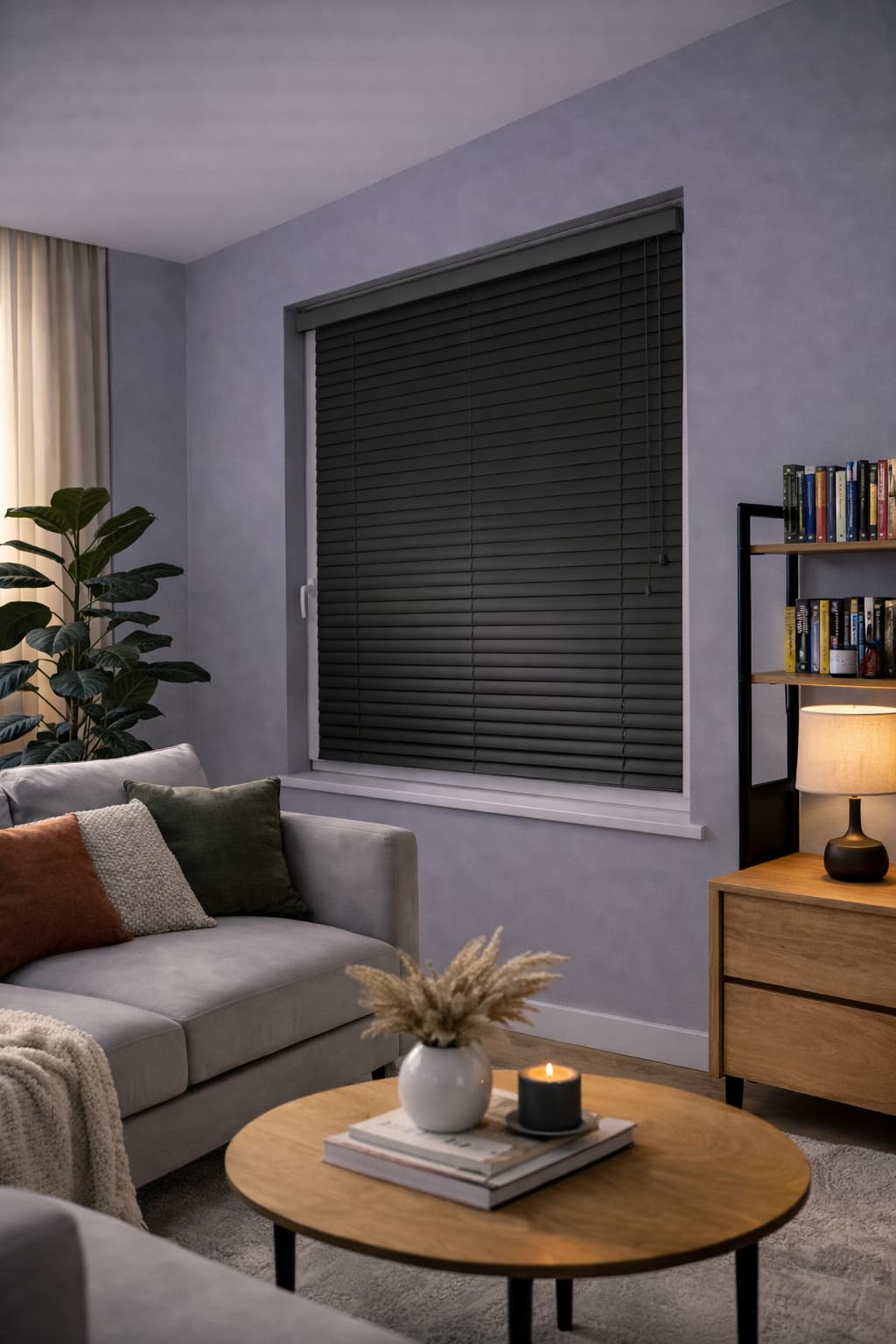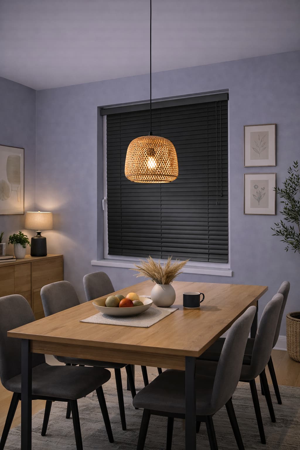 ✅Aluminiowe lamele 25 mm w kolorze czarnym – zapewniają trwałość i łatwość czyszczenia. Wystarczy, że przetrzesz je nawilżoną ściereczką.