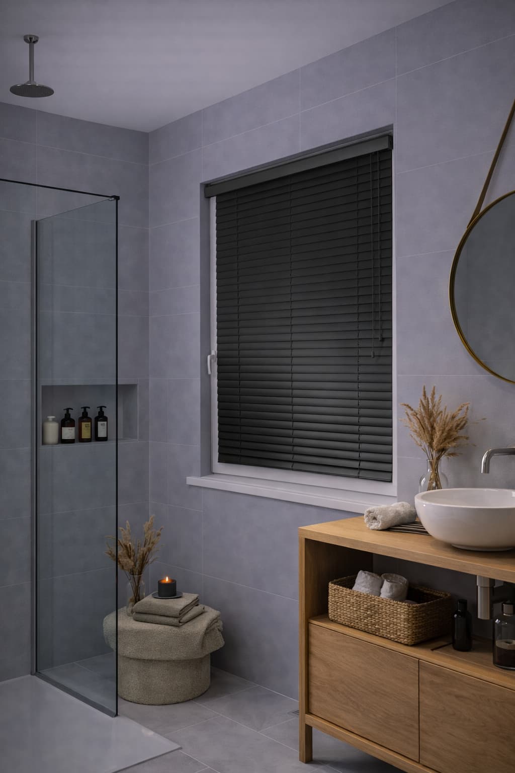 Poszukujesz osłony okiennej w czarnym kolorze do wnętrz o wysokim stopniu wilgotności? Przedstawiamy Ci czarną żaluzję aluminiową o szerokości lameli 25 mm. Jest to węższy wariant oferowanych przez nas żaluzji aluminiowych, który idealnie sprawdzi się w mniejszych pomieszczeniach, takich jak na przykład łazienki. Możliwość personalizacji pozwoli Ci dopasować produkt do Twoich potrzeb, a czarna kolorystyka doda wnętrzu elegancji i nowoczesności.