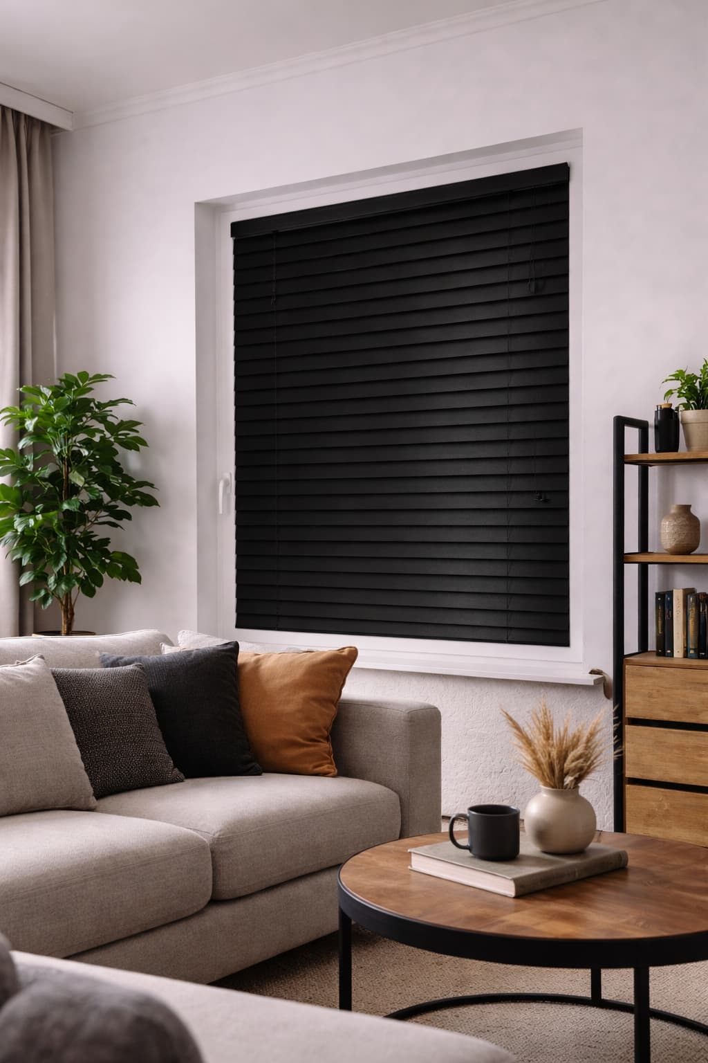 Żaluzje aluminiowe 50 mm PREMIUM w kolorze czarnym to elegancka i funkcjonalna osłona okienna, zaprojektowana z myślą o nowoczesnych i loftowych wnętrzach. Głęboka, intensywna czerń nadaje żaluzjom wyrazisty, luksusowy charakter i doskonale komponuje się z betonem, drewnem oraz metalowymi dodatkami, tworząc spójną i stylową aranżację.