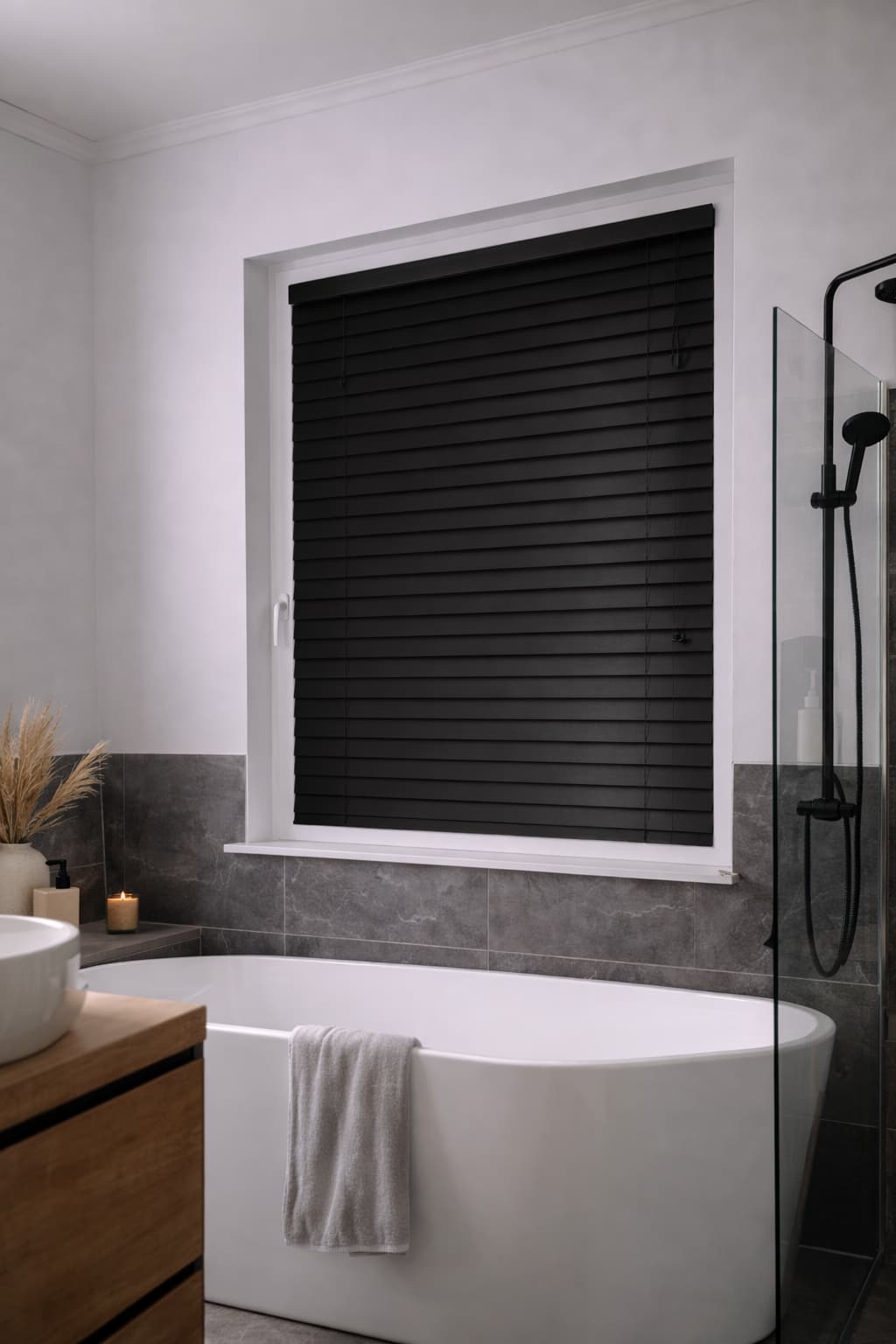 Wybierz żaluzje aluminiowe 50 mm PREMIUM i ciesz się ponadczasową czernią oraz ekskluzywnym wykończeniem, które podkreśli charakter Twojego domu lub biura.
