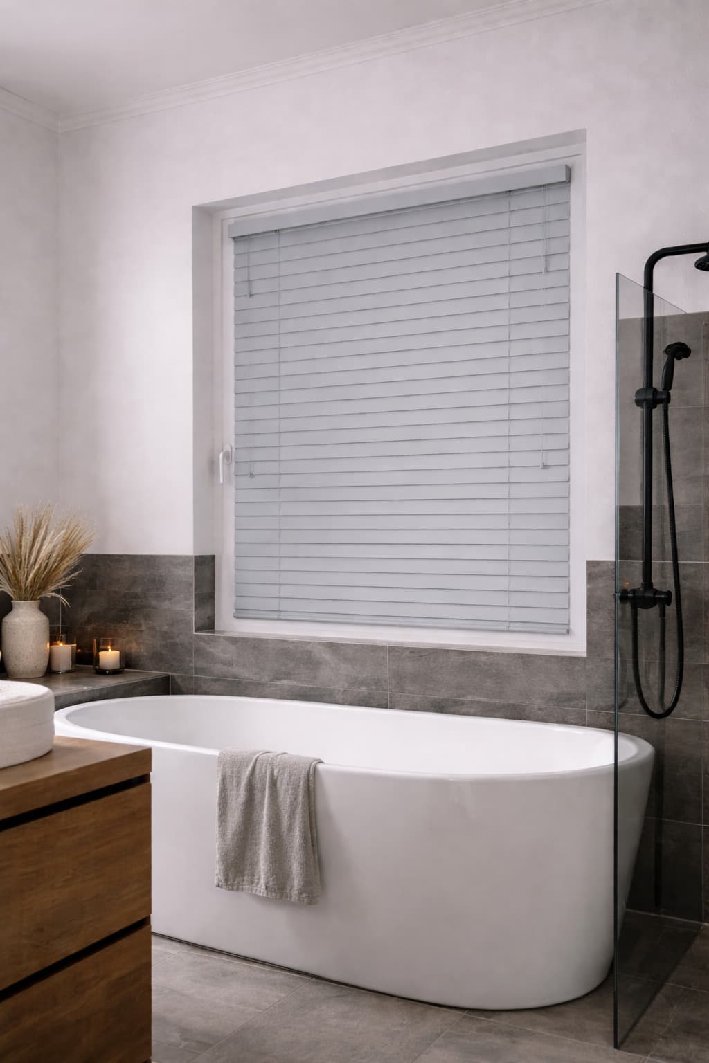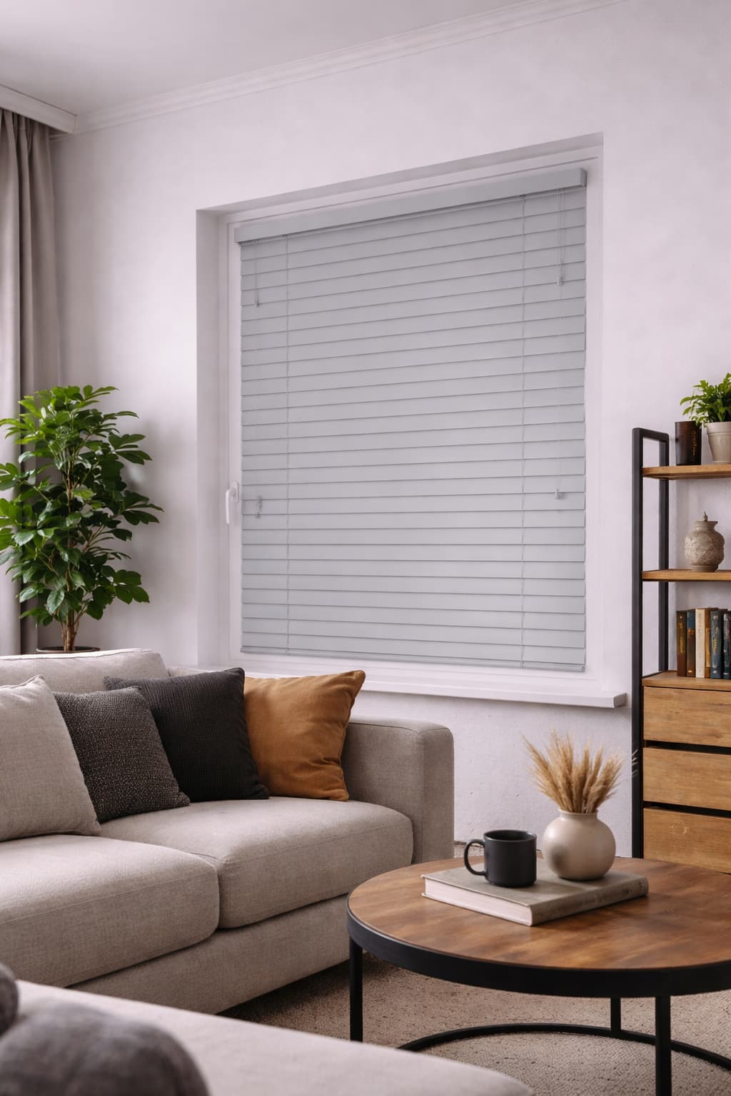 Żaluzje aluminiowe 50 mm PREMIUM w kolorze jasnym szarym to elegancka i funkcjonalna osłona okienna, stworzona z myślą o nowoczesnych i minimalistycznych wnętrzach. Subtelny, jasnoszary odcień w połączeniu z matowym wykończeniem typu velvet o delikatnie szorstkiej strukturze nadaje żaluzjom lekki, a zarazem luksusowy charakter oraz skutecznie ogranicza refleksy światła.