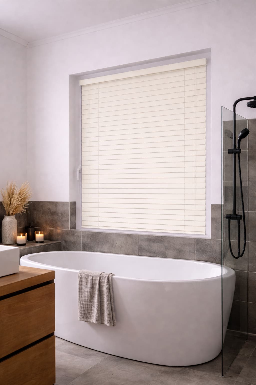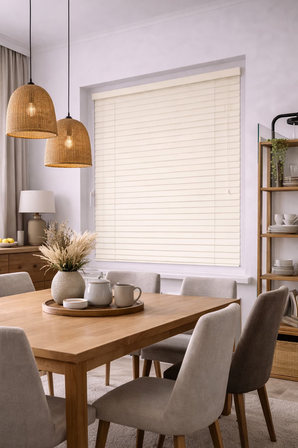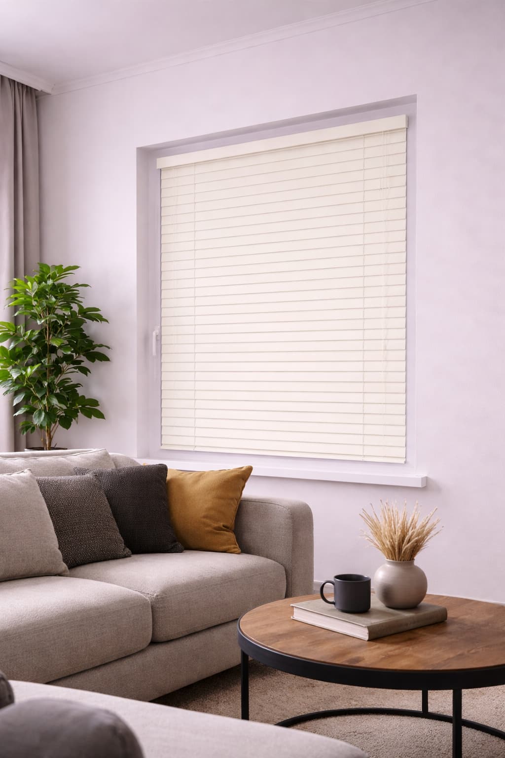 Żaluzja aluminiowa 50 mm PREMIUM w kolorze kremowej bieli to elegancka i funkcjonalna osłona okienna, zaprojektowana z myślą o jasnych, nowoczesnych i ponadczasowych wnętrzach. Subtelny, ciepły odcień kremowej bieli w połączeniu z matowym wykończeniem velvet o delikatnie szorstkiej strukturze nadaje żaluzjom lekki, luksusowy charakter i skutecznie ogranicza refleksy światła.