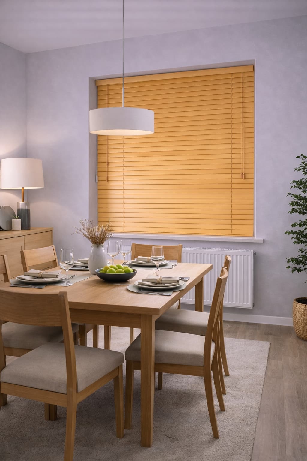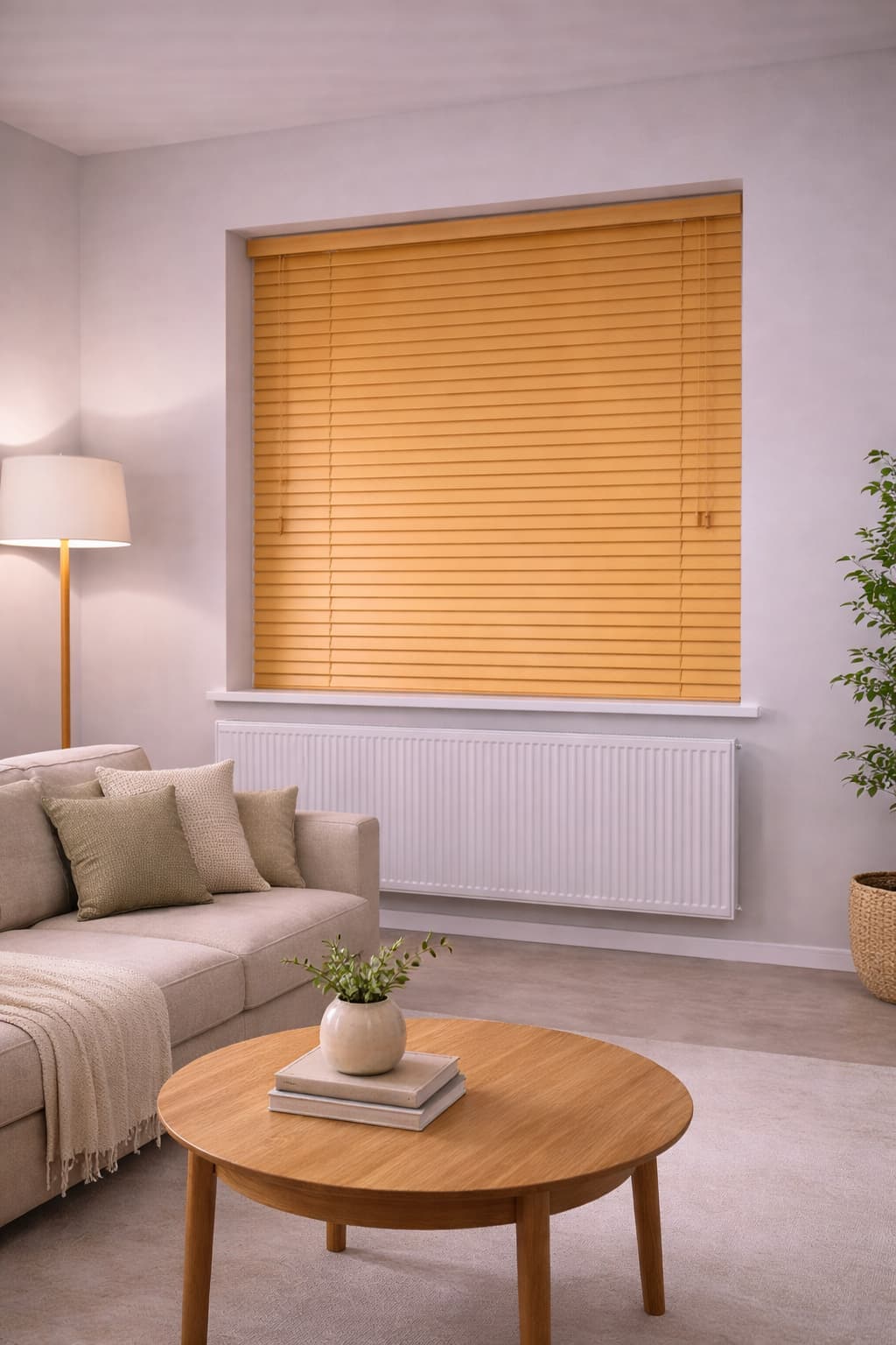 Jasnobrązowe żaluzje drewniane o szerokości lameli 25 mm stanowią świetną ochronę przed wzrokiem osób z zewnątrz. Umożliwiają zarówno częściowe ograniczenie widoczności, jak także pełne zaciemnienie wnętrza.