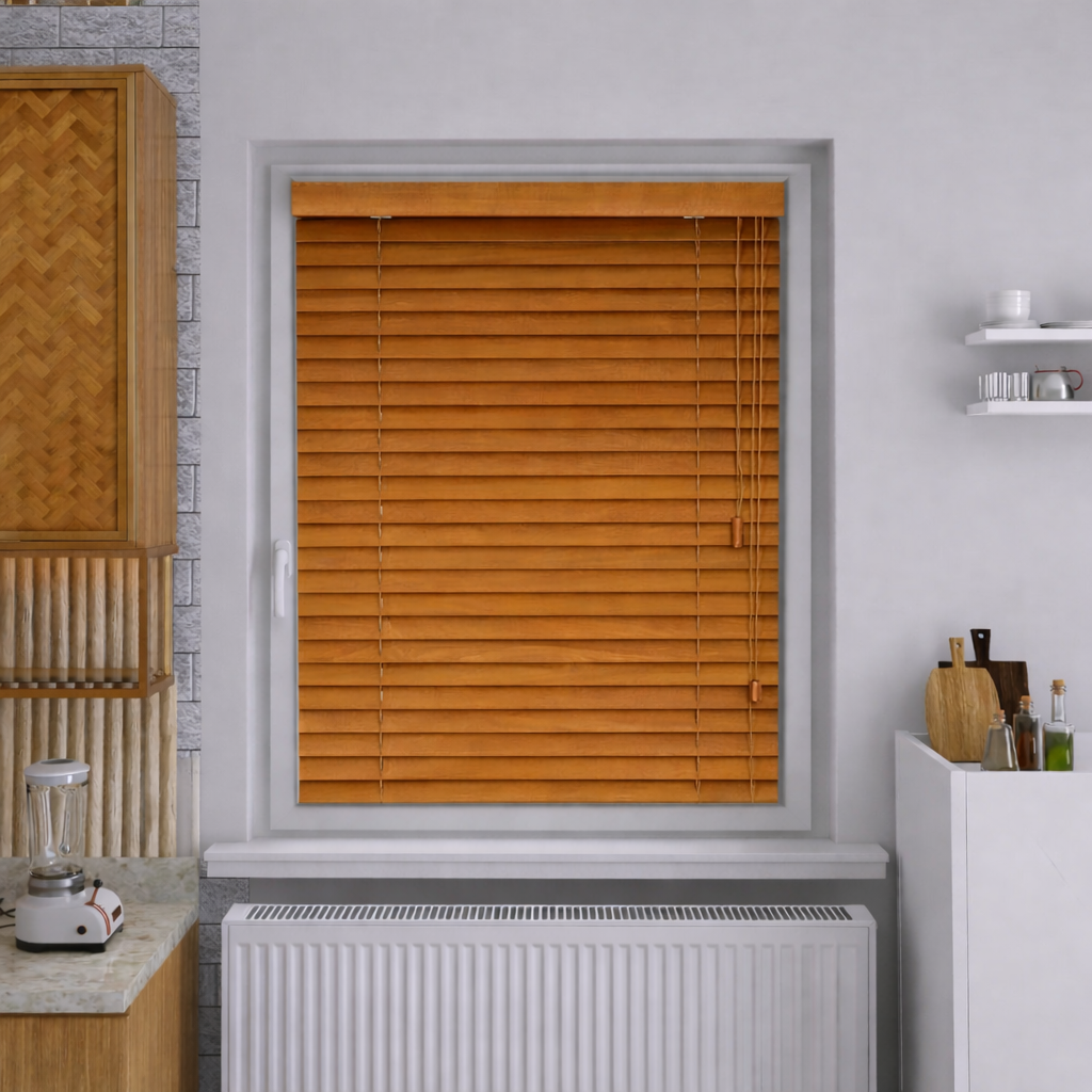 Żaluzja drewniana 25 mm na wymiar–jasny brąz