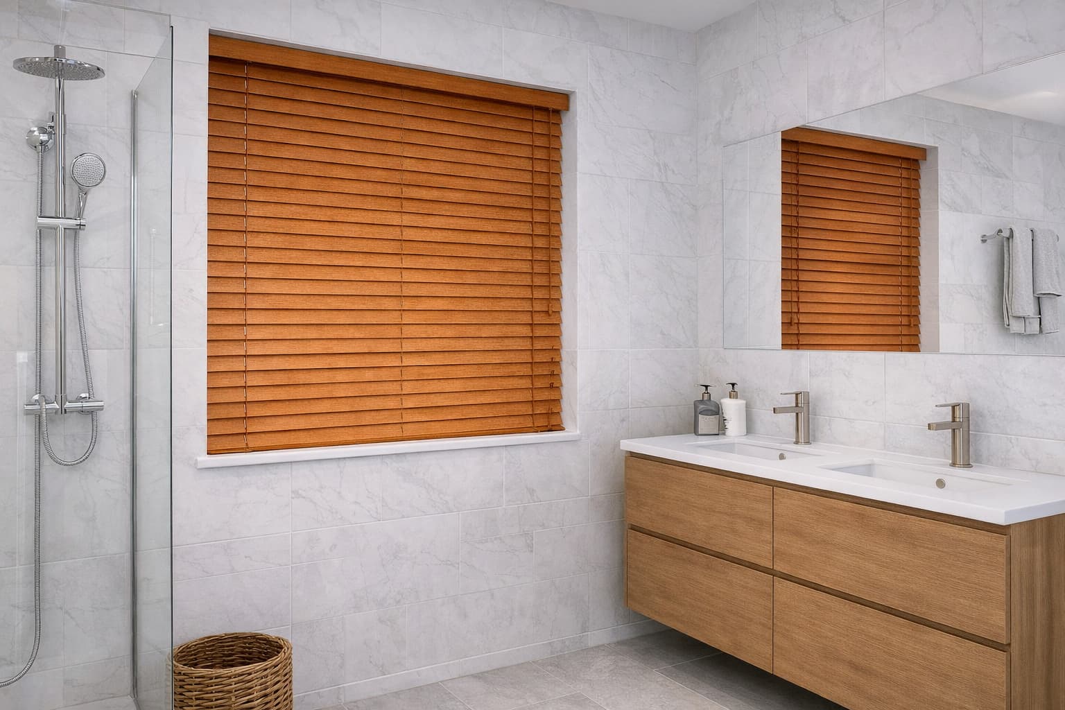 Żaluzje drewniane o szerokości lameli 25 mm stanowią świetną ochronę przed wzrokiem osób z zewnątrz. Umożliwiają zarówno częściowe ograniczenie widoczności, jak także pełne zaciemnienie wnętrza.